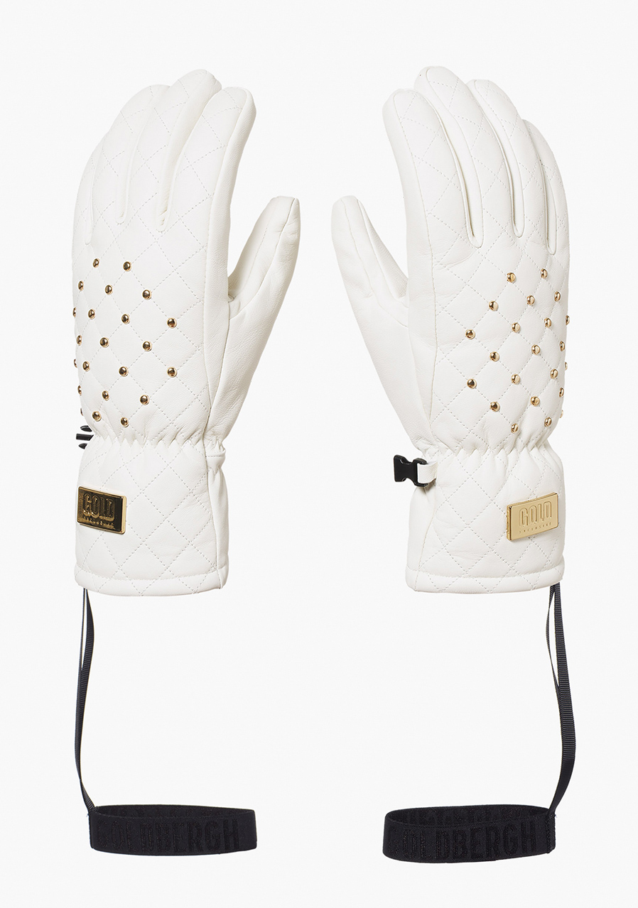 These regular-fit gloves combine an elegant look with functional features for winter sports. Waterproof and breathable materials, a windproof lining, and Primaloft filling provide warmth and comfort. Quilted detailing and flat studs on the back add a stylish touch, while an elastic wrist strap and a gold metal Gold Exclusive logo on the cuff enhance the luxurious character. The gloves come with a travel pouch and fit true to standard sizing.