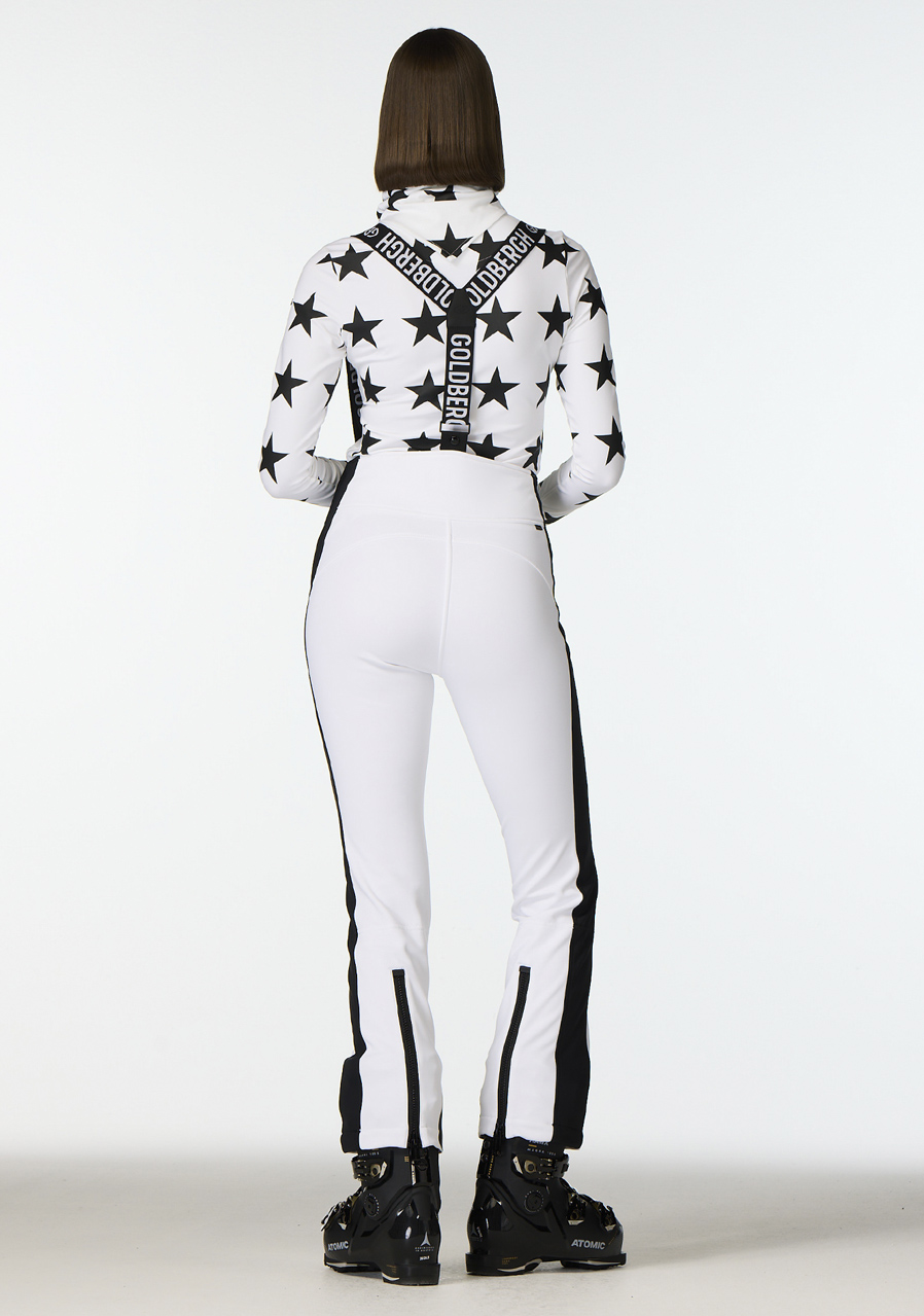 These women’s ski pants in a slim fit cut feature detachable elastic suspenders that provide enhanced stability and comfort while wearing. Two zippered pockets offer secure space for small essentials. Zippers at the back of the legs make it easier to pull the pants over boots. The hem is equipped with a snow gaiter that prevents snow from entering. The pants have a standard fit, so we recommend choosing your usual size.
