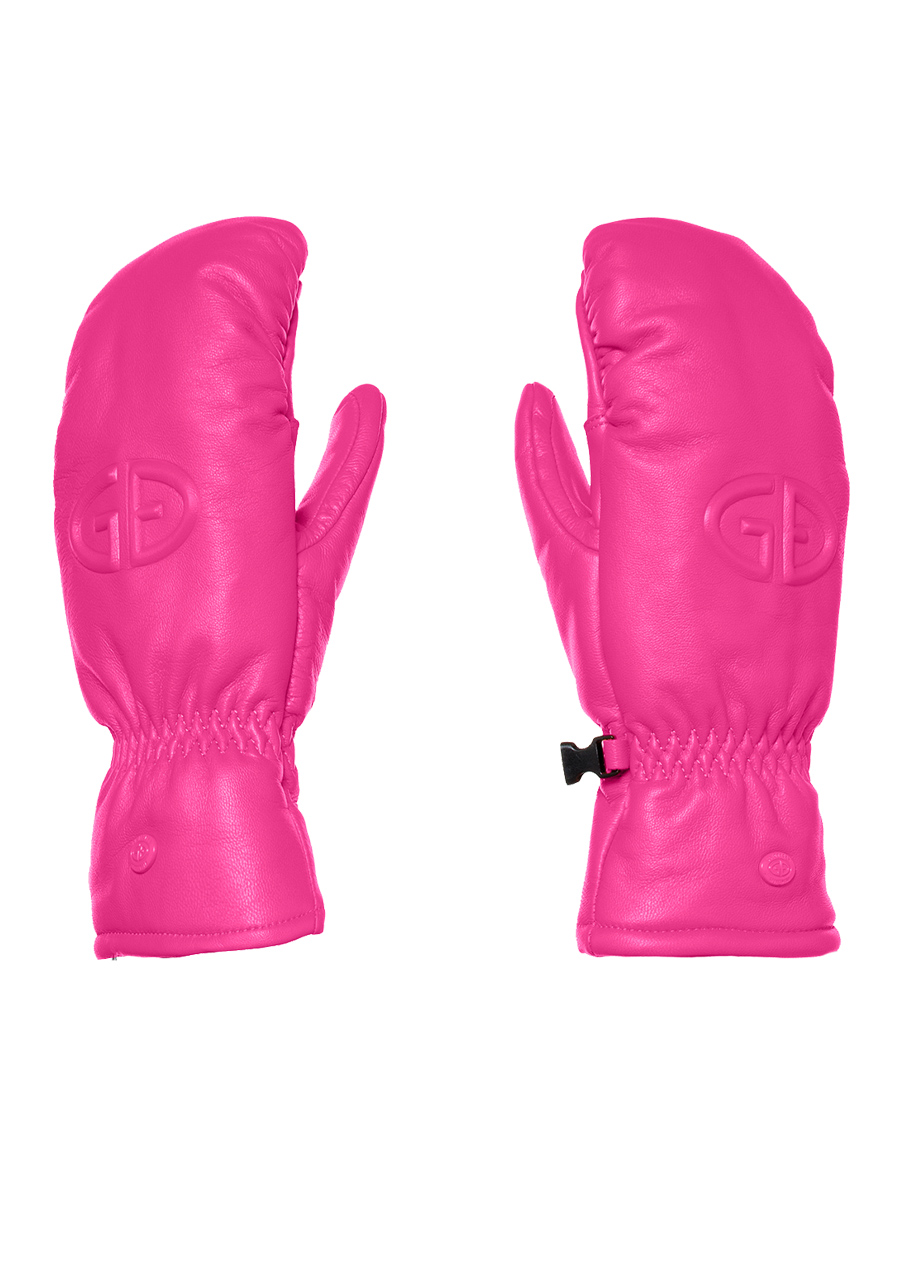 The Goldbergh Hilja Mittens in pink are elegant women’s ski mittens, perfect for winter sports and cold-weather wear. Made from premium goatskin leather, they feature PrimaLoft insulation that provides outstanding warmth and comfort even in cold and windy conditions. These mittens are waterproof, breathable, and wind-resistant, ensuring your hands stay dry and protected during intense activity. The design is decorated with an embossed Goldbergh logo and a metallic emblem, adding a luxurious touch. An elastic wrist strap ensures a secure fit, and the mittens come with a practical travel pouch. A stylish and functional choice for skiing as well as everyday winter use.