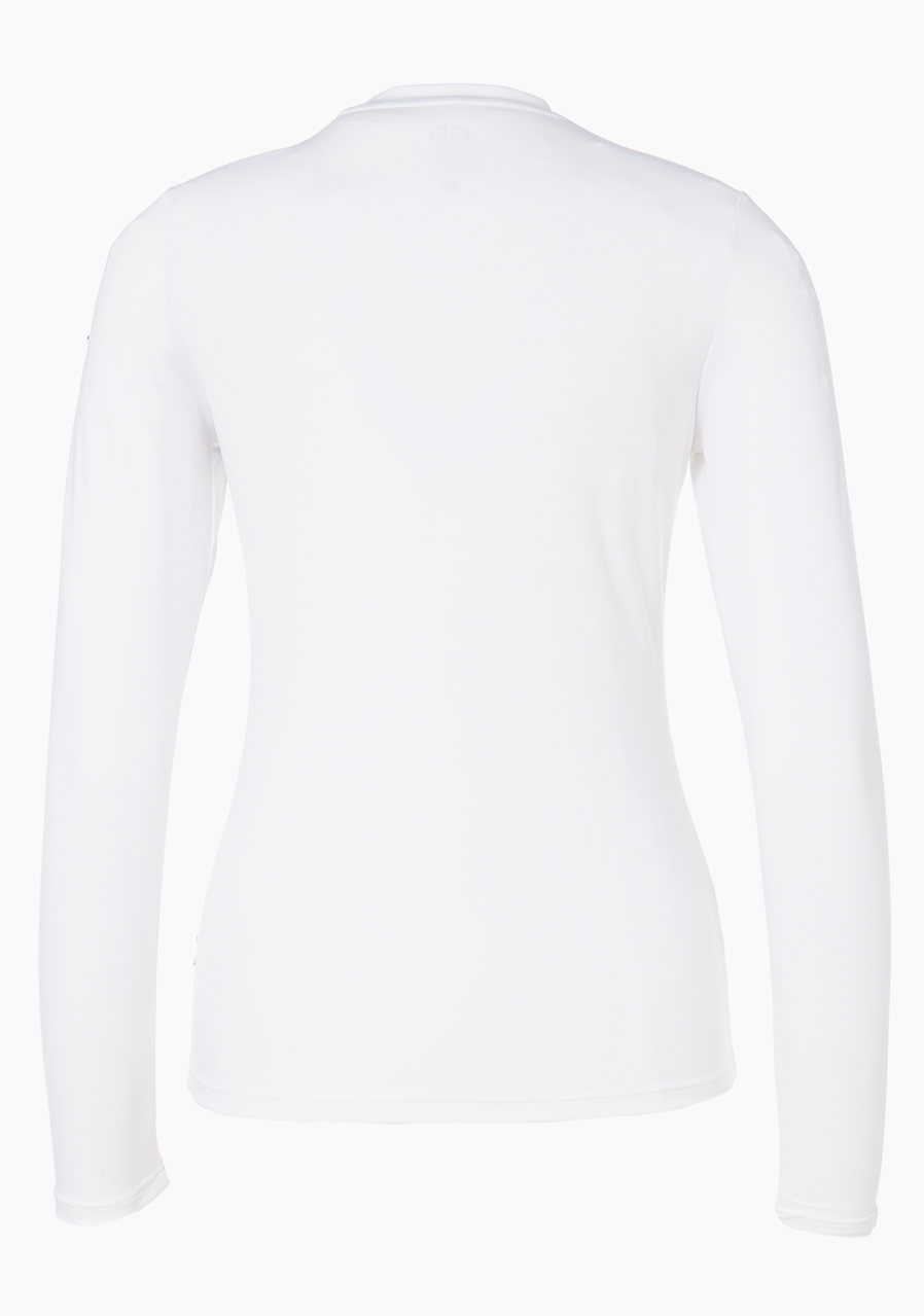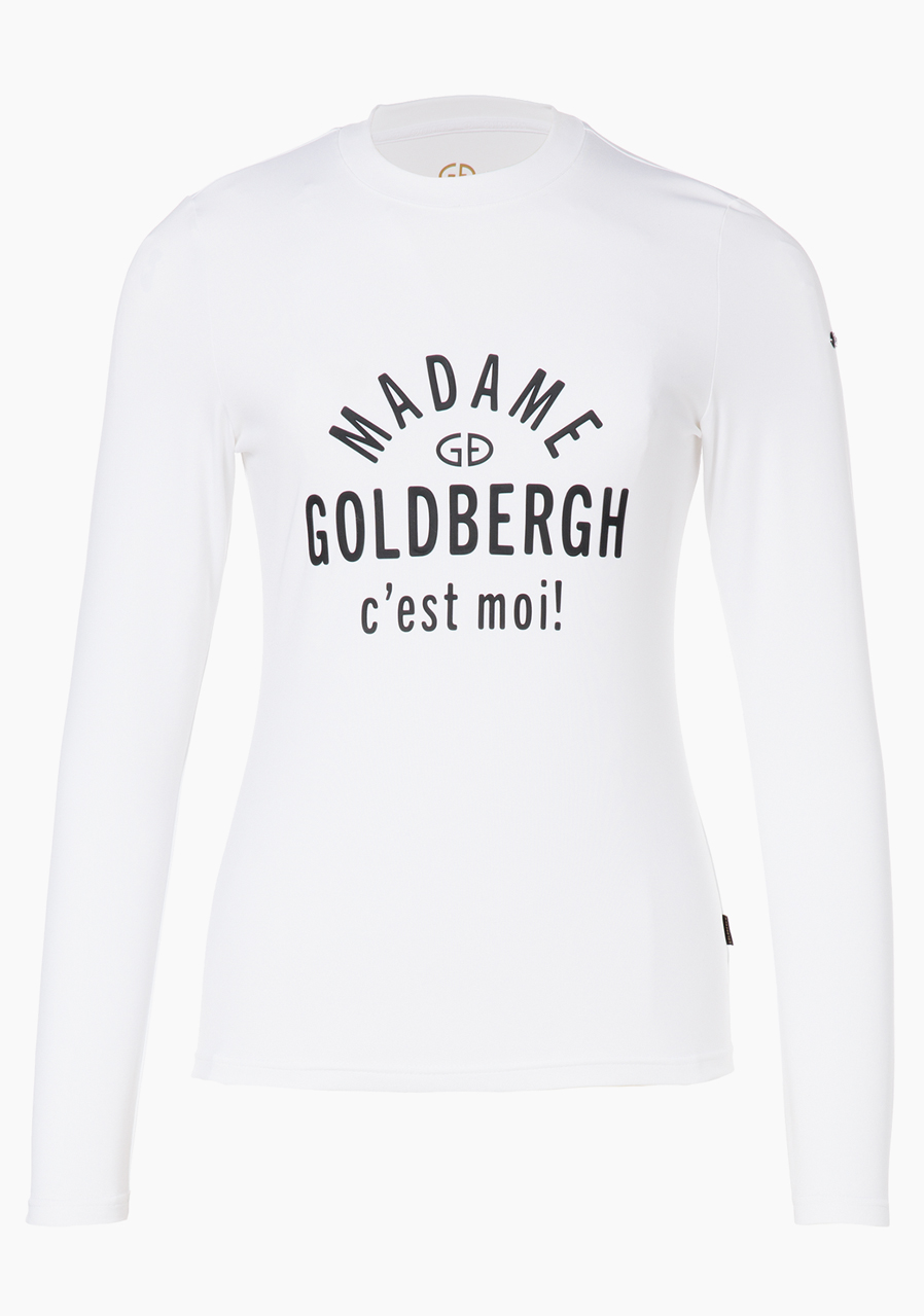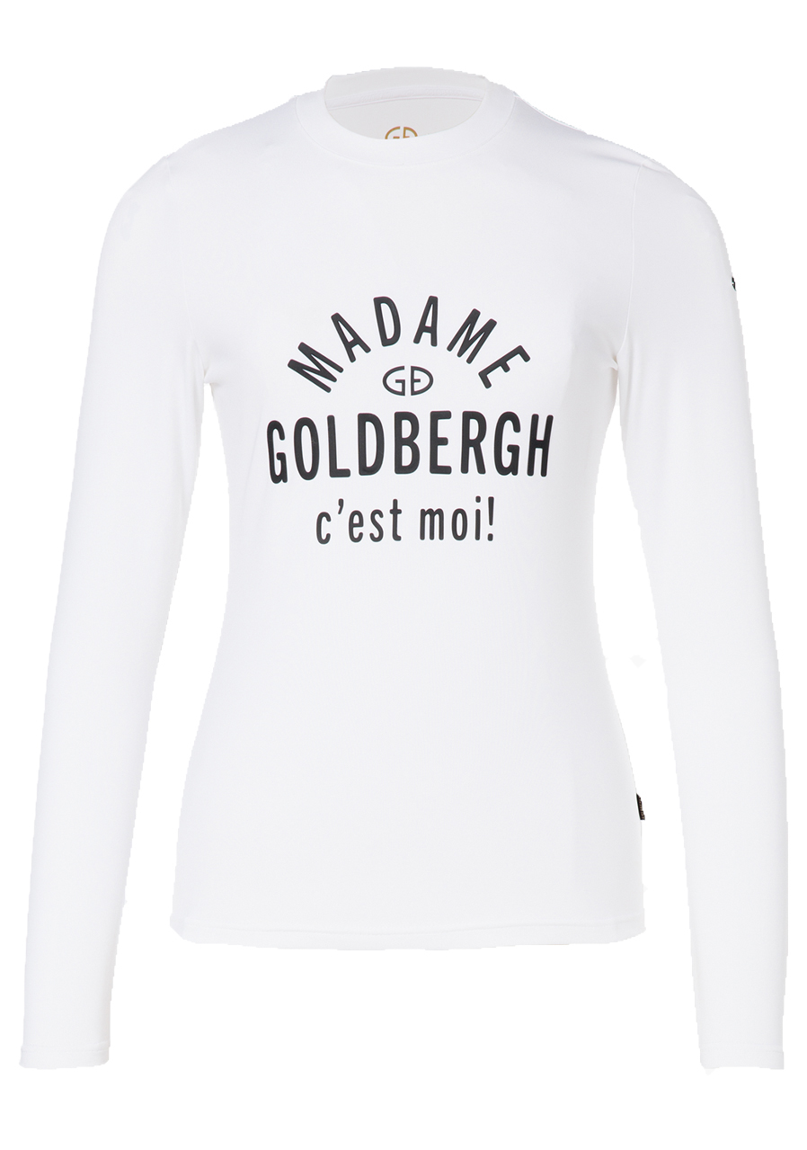 The Goldbergh Madame Long Sleeve Tee in white is a stylish and functional women’s long-sleeved top, ideal for various sports activities such as skiing or outdoor fitness training. Thanks to Powerstretch technology, it offers high elasticity and comfort during movement. The T-shirt is made from a material that ensures breathability, quick drying, and moisture-wicking functionality, keeping the body dry and comfortable. In addition, the material is resistant to odour. The slim fit cut adapts perfectly to the body. The outer side is smooth with a raised Madame Goldbergh logo on the chest and a metal badge on the sleeve. This T-shirt is perfect for active women who demand quality and comfort in sports without compromising on style.