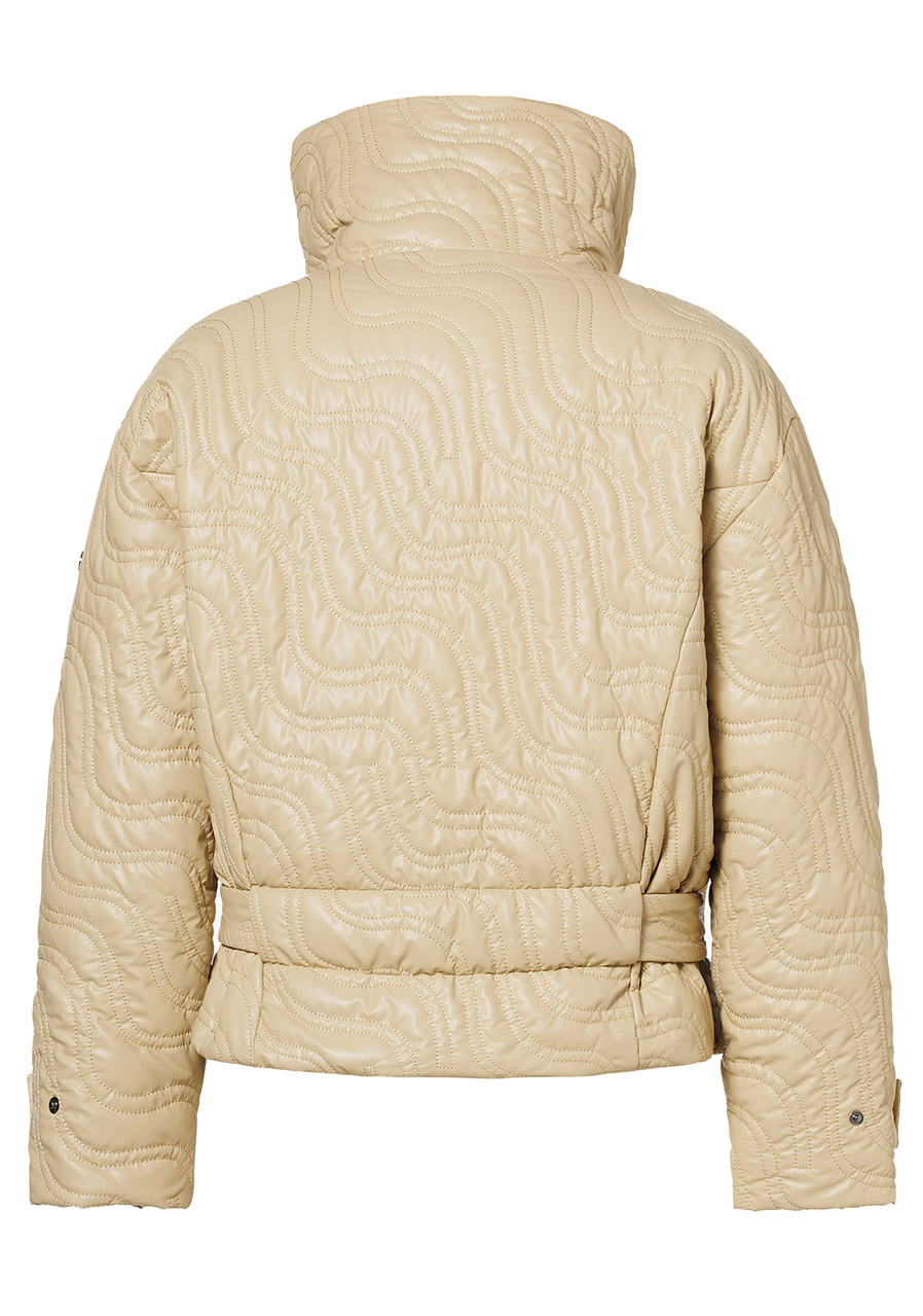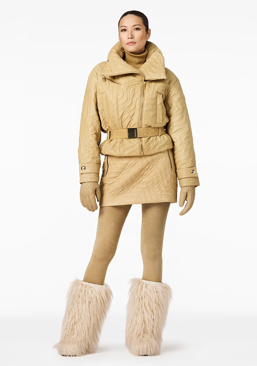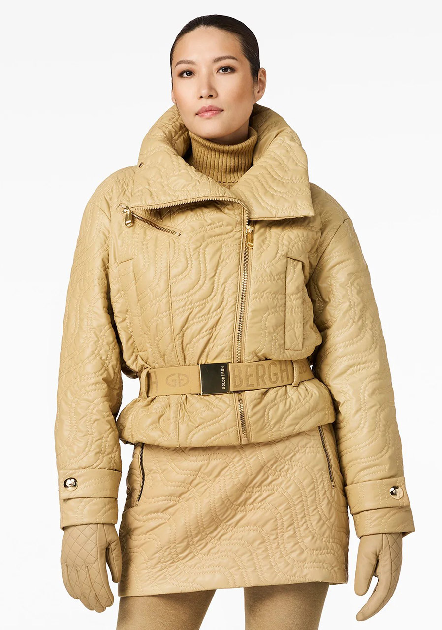 This women’s winter jacket with a striking oversized silhouette and asymmetric front closure is a perfect choice for fashionable winter looks. It comes with a belt, adjustable sleeve cuffs, and a detachable snow skirt—combining standout style with practical functionality for cold weather. The Primaloft® insulation ensures the warmth you need for everyday urban wear during winter.