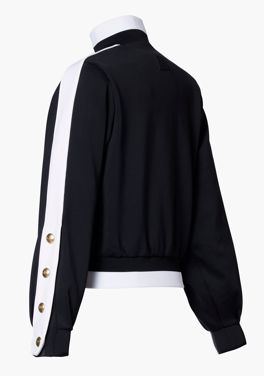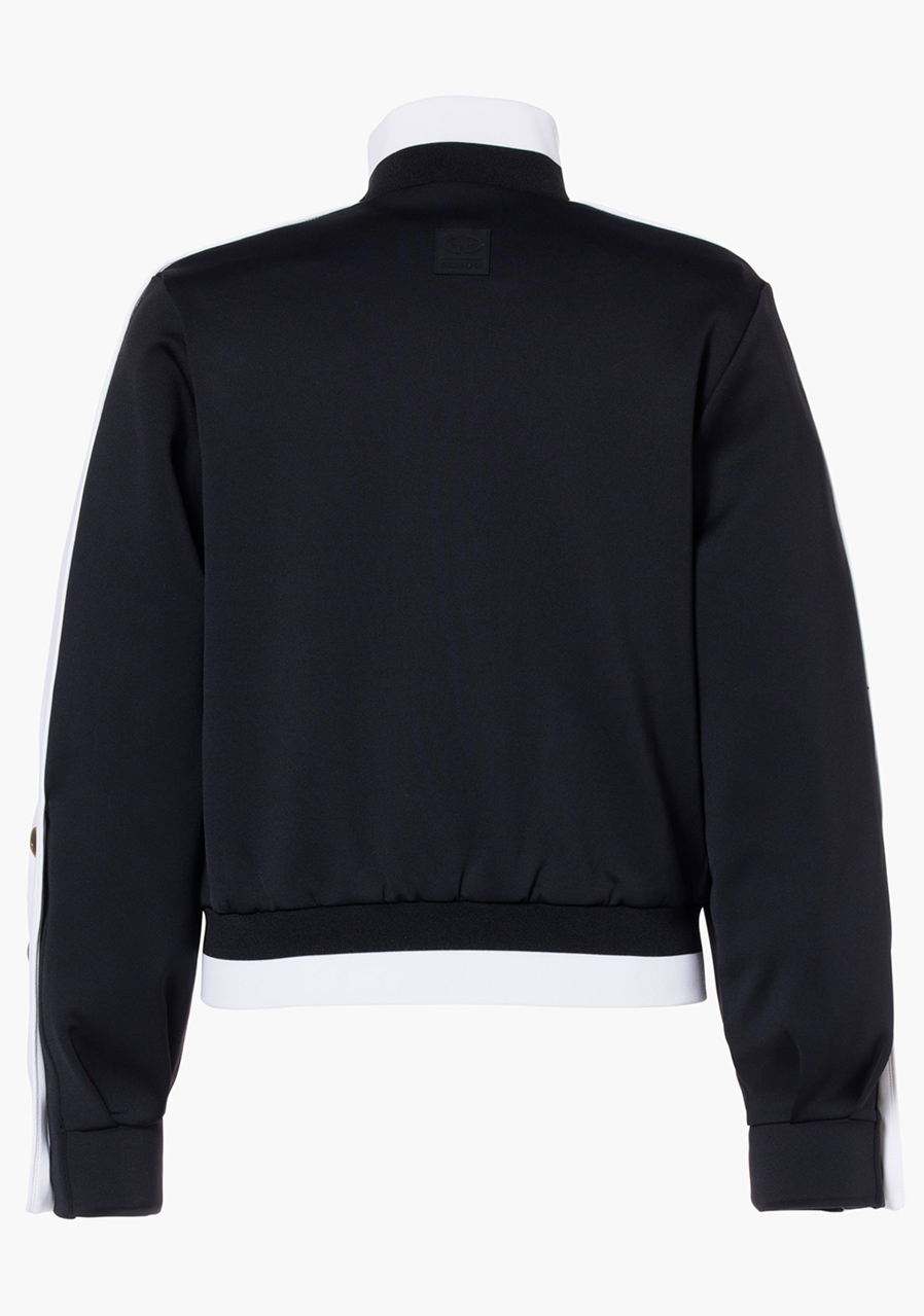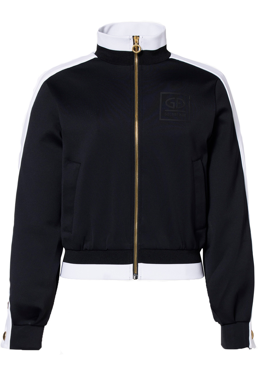 The stylish shortened women's jacket Goldbergh Monaco is characterized by sporty elegance and functionality. The luxurious design inspired by a summer outfit in the spirit of the Côte d'Azur can be perfectly combined with Grimaud trousers, for example. The jacket is made of elastic tracksuit material, which provides maximum comfort and freedom of movement. The classic retro style is complemented by contrasting details with gold buttons on the sleeves and at the waist on the hems. The long zipper and pockets add practicality to the jacket, making it a great casual companion for days spent both in the city and in nature.