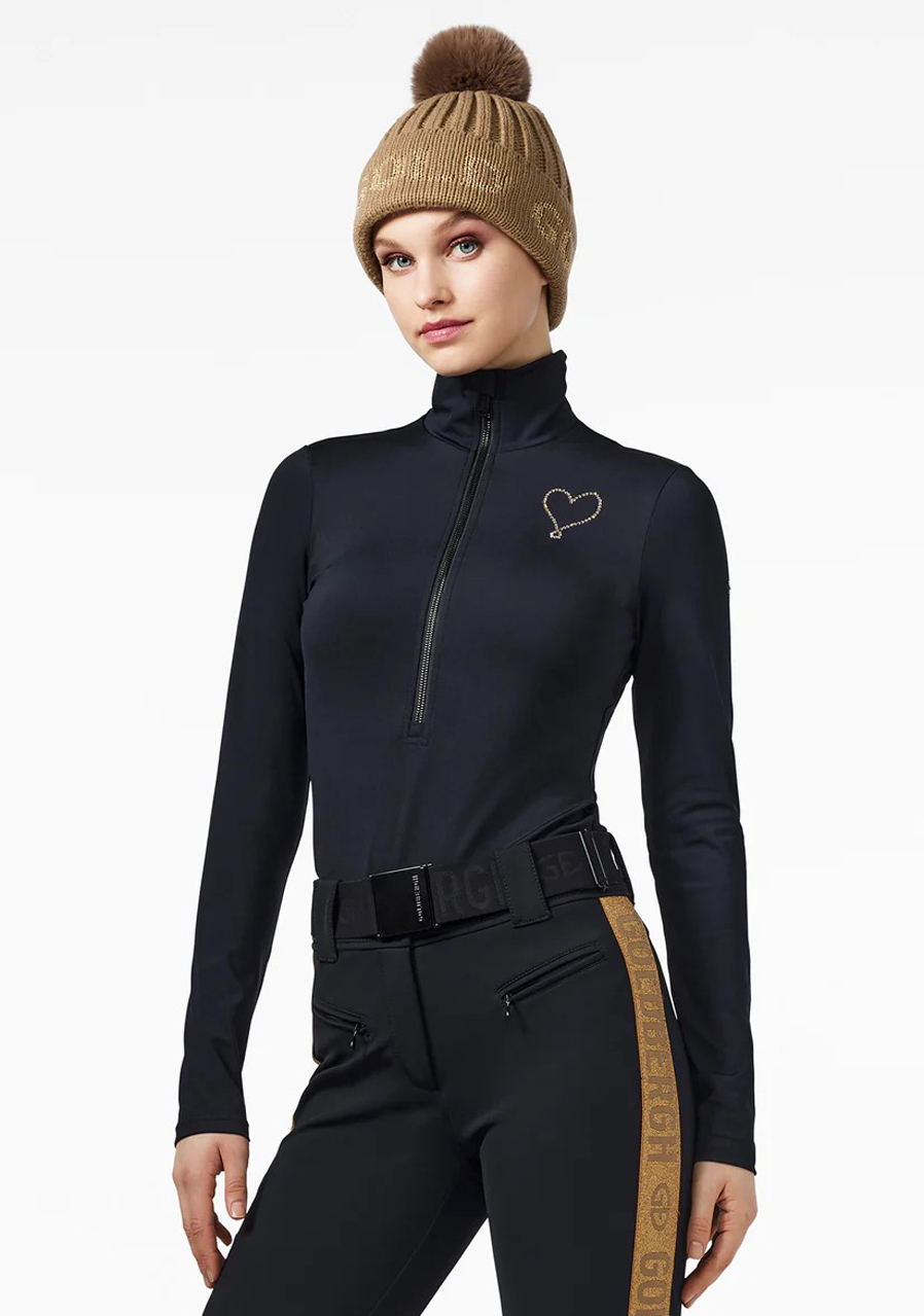 The Goldbergh Ora Ski Body in black is a luxurious ski bodysuit designed for women who want to stand out not only with their style but also with their performance on the slopes. This elegant model with a brushed inner finish offers a slim fit that perfectly contours the body while providing maximum freedom of movement thanks to the powerstretch material. The combination of polyester and elastane ensures comfort and flexibility, while the special fabric treatment guarantees quick-drying and breathable properties, ideal for sports activities. The bodysuit features a front zipper, a high collar, and the design is completed with the brand’s logo on the back. A practical detail includes adjustable fastening in the crotch area. The material is also equipped with an antibacterial treatment that eliminates odors caused by sweating. This model is an excellent choice for skiers who prioritize both style and performance.