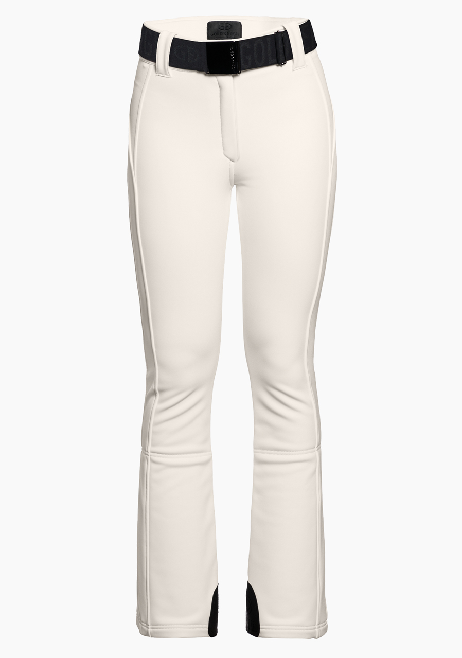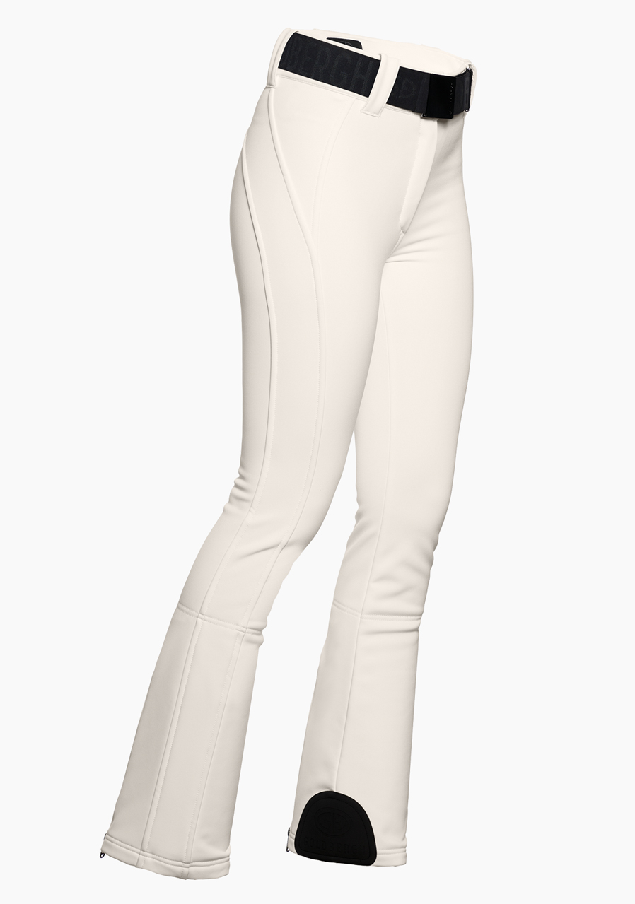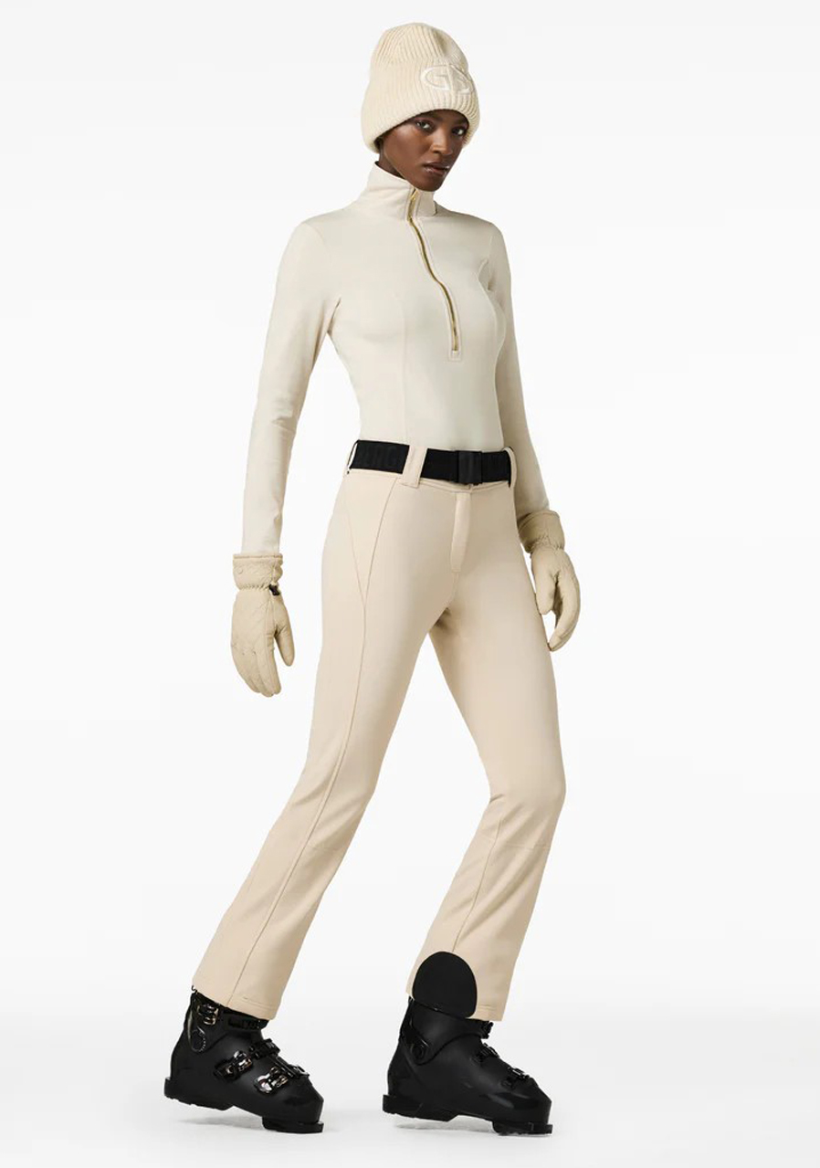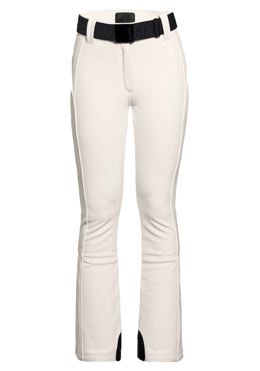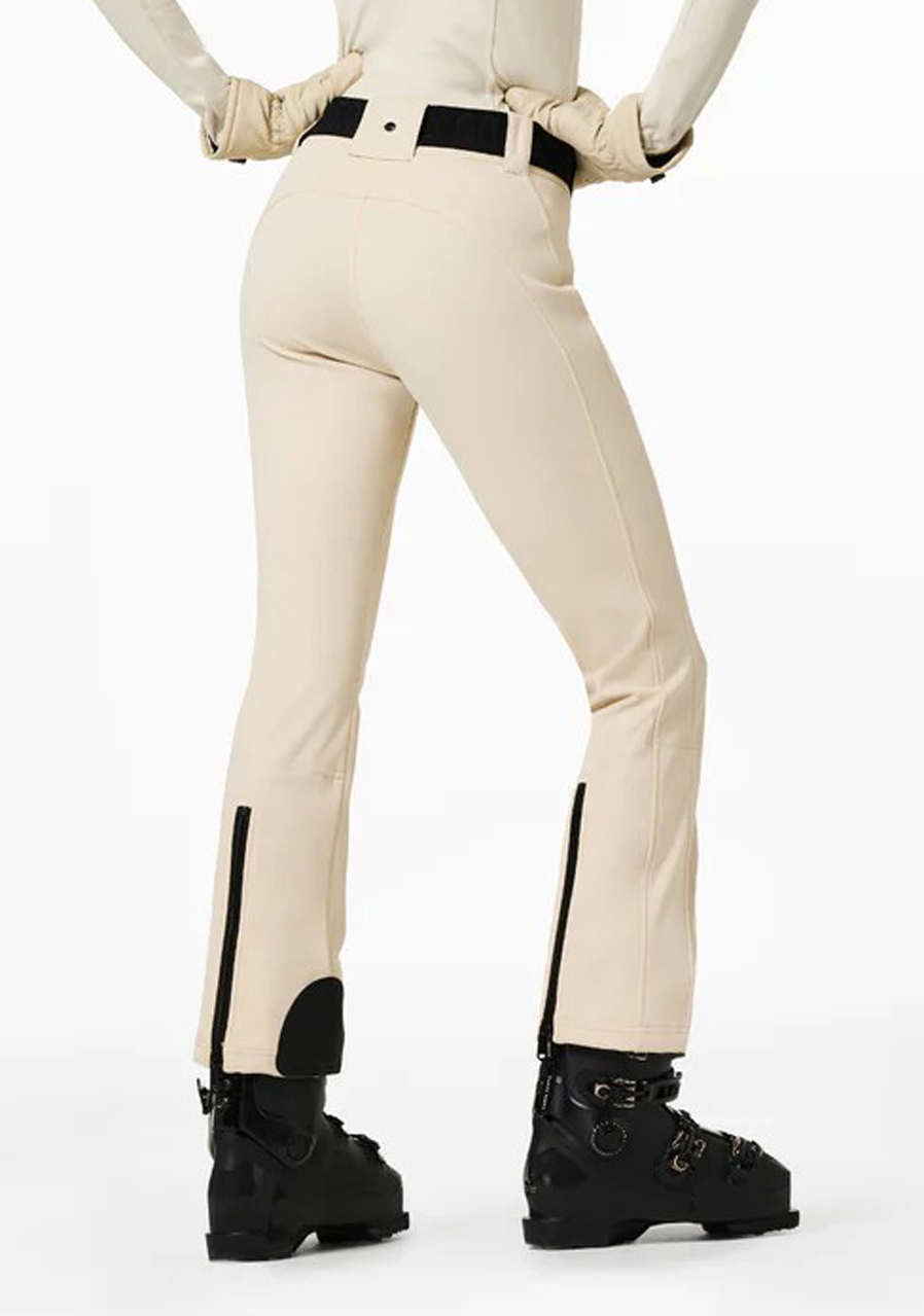 The Goldbergh Pippa Ski Pants in the Champagne shade are the perfect choice for winter sports such as alpine skiing or snowboarding. Made from a 3-layer softshell with WB400 material by Schoeller, the outer fabric is water- and wind-repellent while offering excellent stretch and freedom of movement. The inner lining is made from 100% polyamide with a fleece backing for added warmth and comfort. The pants feature a slim fit, snow gaiters, and rear leg zippers for easy use with ski boots. A removable belt adds versatility and a stylish touch. This model is ideal for those who want both functionality and fashion on the slopes.