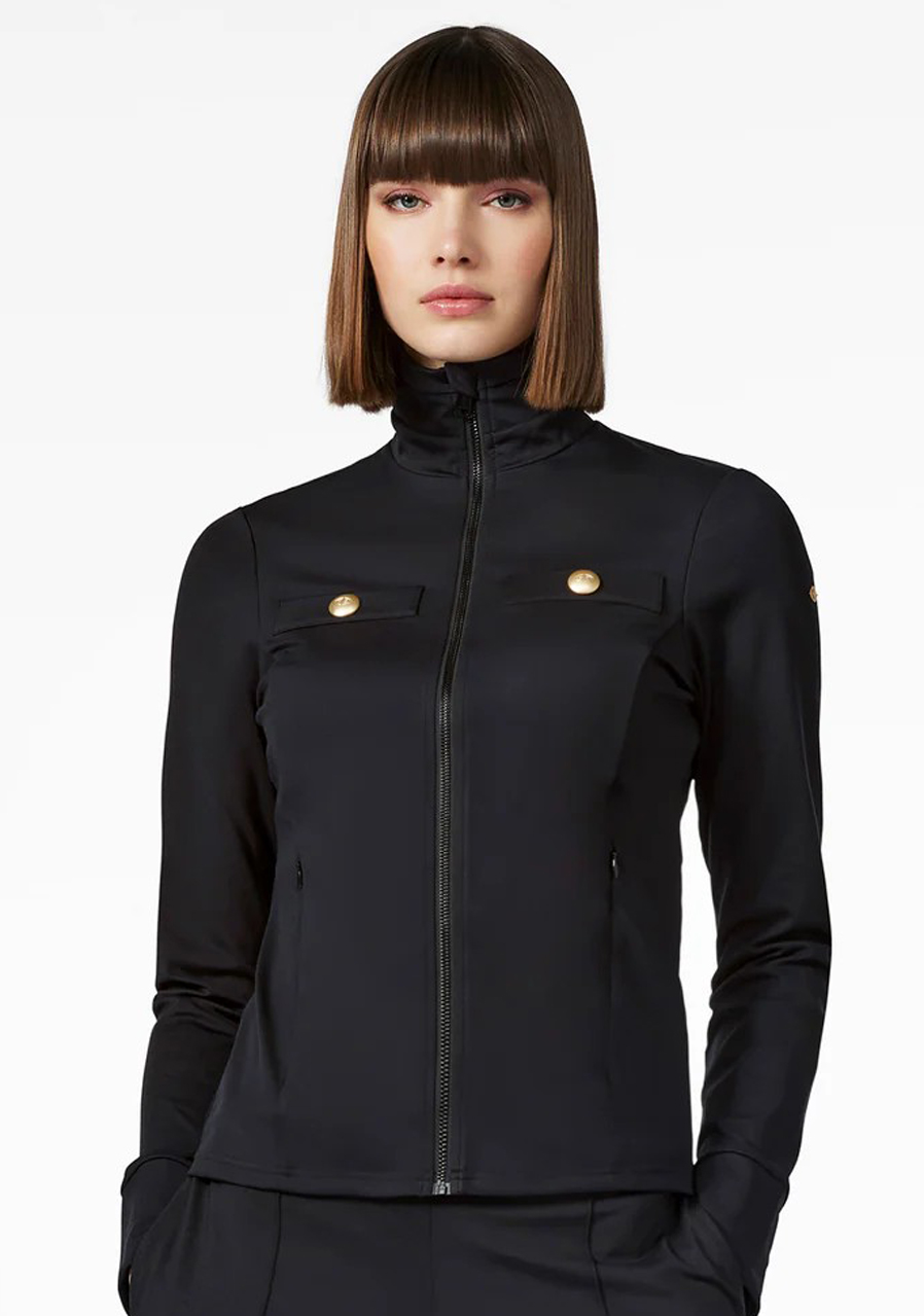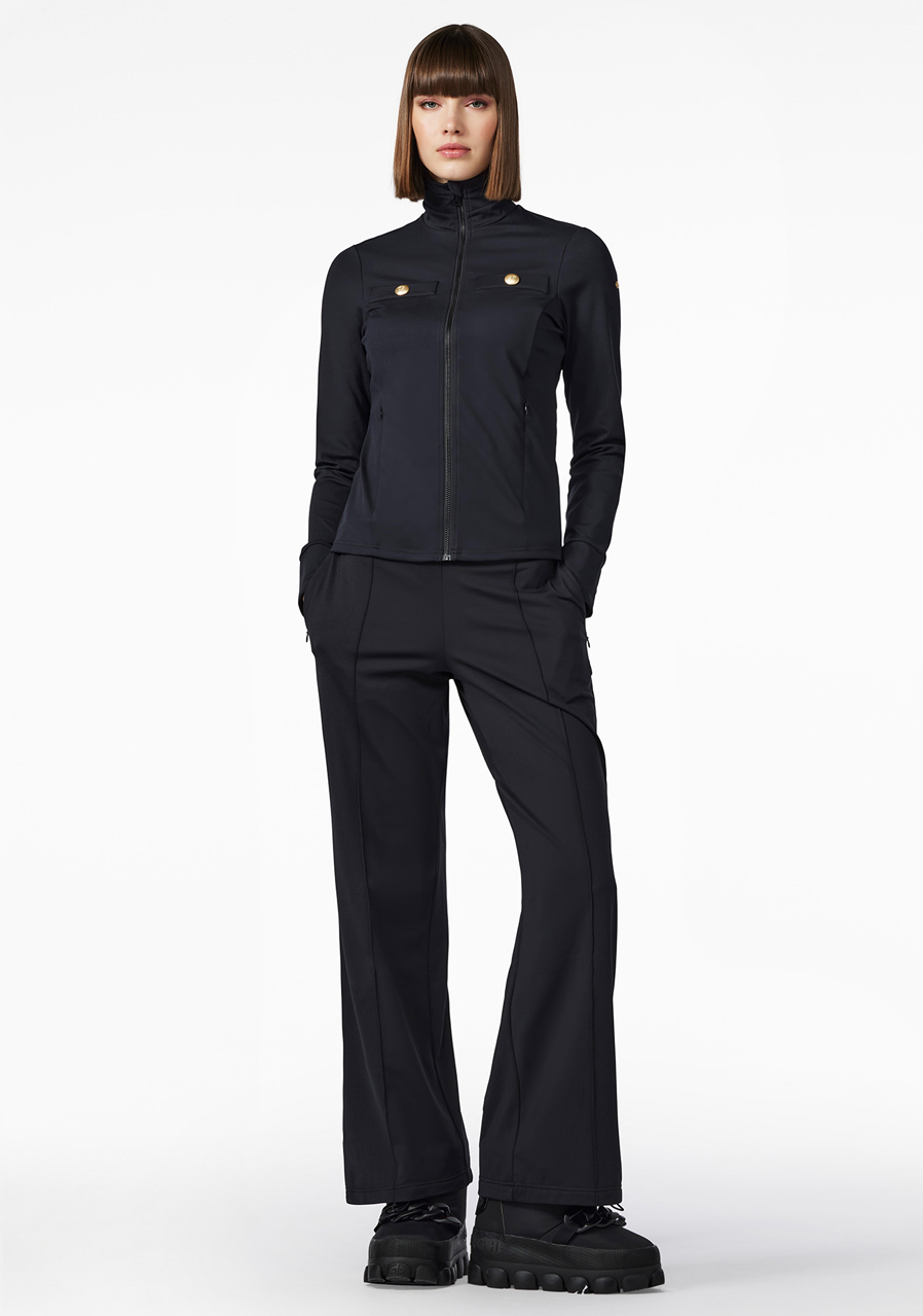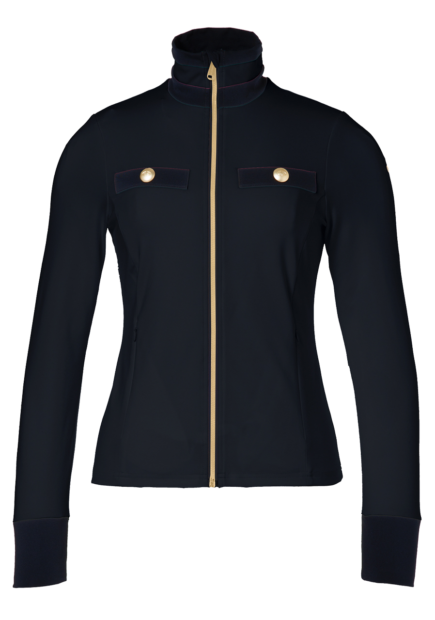 The Goldbergh Renée Full Zip Cardigan in black is a stylish and functional piece that combines modern design with practical features. This sweatshirt is made from a lightweight stretch fabric with Powerstretch technology, which is flexible and provides optimal comfort and freedom of movement. It also features a brushed interior for maximum coziness. Thanks to quick-dry technology, it dries quickly, which is ideal for sports, and anti-odor technology helps neutralize unpleasant odors. It is decorated with a striking gold zipper and the brand logo on the sleeve, giving it a luxurious appearance. It also features a high collar, faux chest pockets, and hidden zippered pockets at the bottom. The slim fit design ensures a great fit and the elastic materials help maintain its shape. Perfect for sports as well as everyday wear, with attention to detail and comfort.