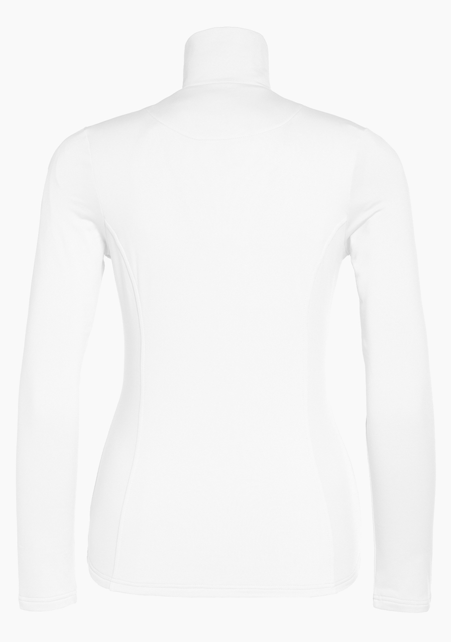 The Goldbergh Serena Ski Pully in white is a stylish and high-performance ski pully designed for winter sports activities. Made from a stretch fabric with Powerstretch technology, it offers excellent freedom of movement and a flattering, body-hugging fit. The breathable, quick-drying material ensures maximum comfort during demanding activity. Antibacterial technology helps prevent unpleasant odors, reducing the need for frequent washing. A soft brushed interior adds warmth and comfort. The half-zip front allows easy ventilation. Made from eco-friendly materials, this pully combines functionality with sustainability. The slim fit and metal Goldbergh badge on the sleeve complete its elegant look.