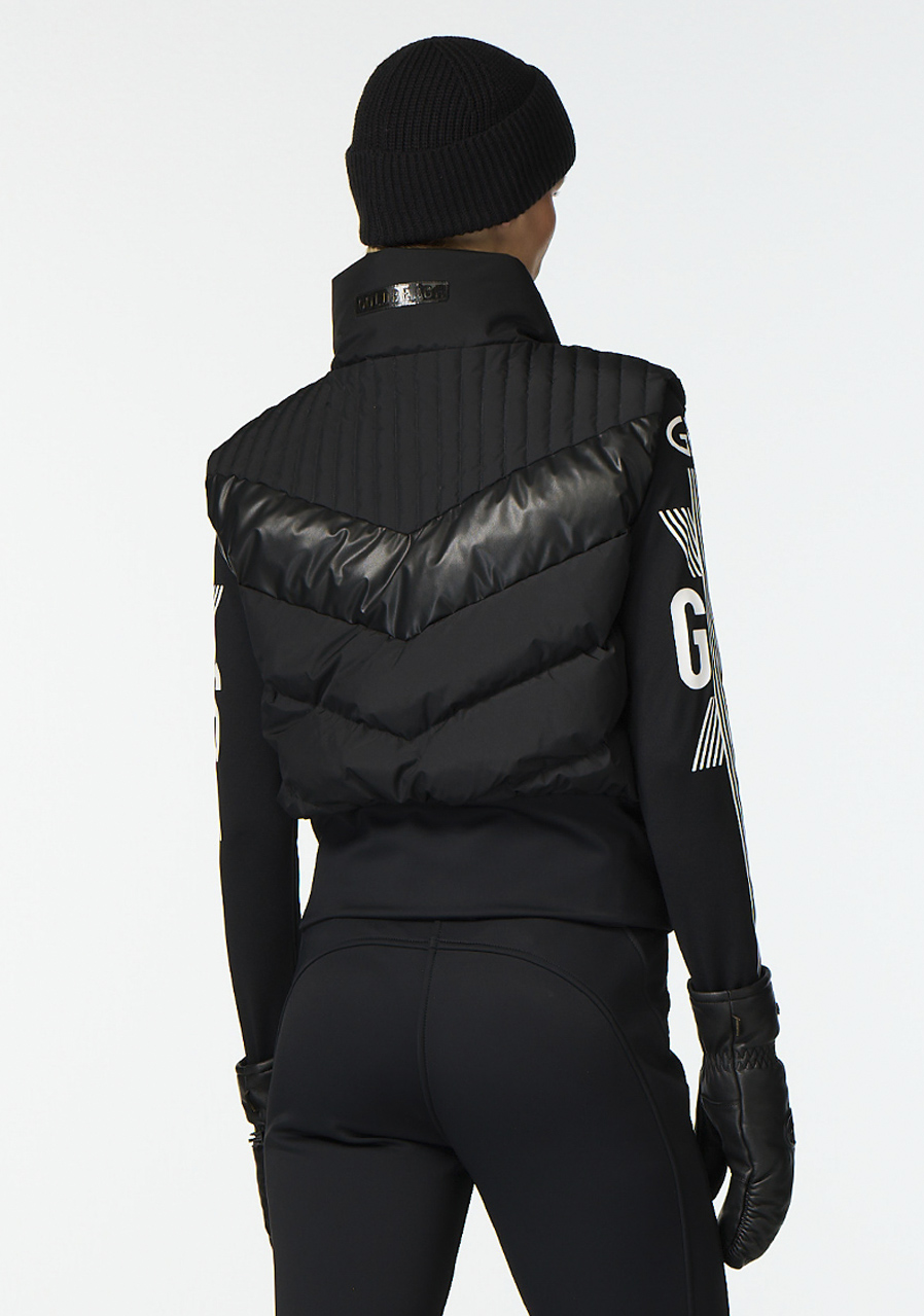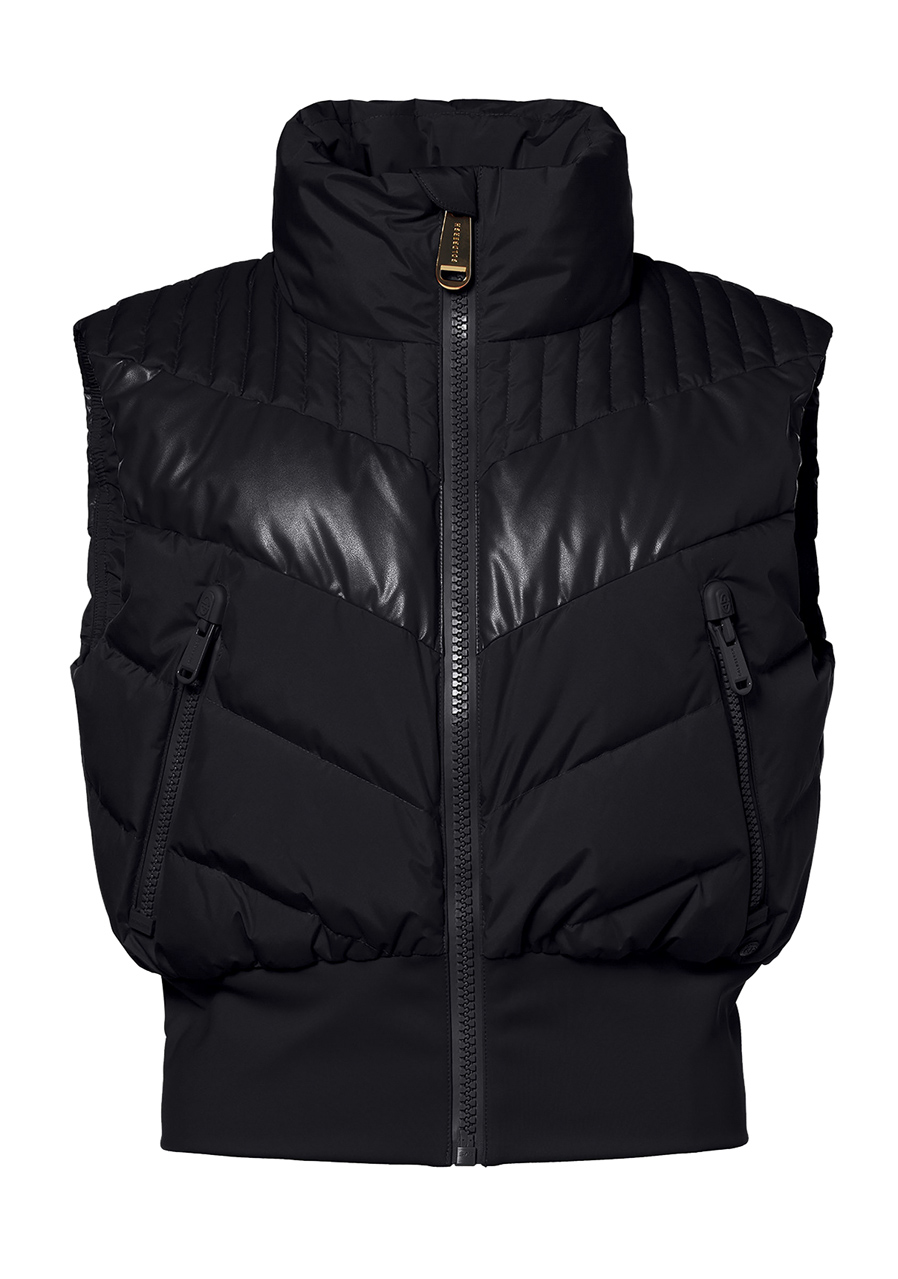 This women’s ski vest in a comfortable regular fit is made from partially recycled outer fabric and lining with an anti-odor treatment for enhanced wearing comfort. The filling consists of down goose feathers certified by the Responsible Down Standard (RDS), providing excellent thermal insulation while remaining lightweight. The vest offers two outer pockets and one inner pocket for secure storage of small essentials. The fit corresponds to standard sizes, so we recommend choosing your usual size.