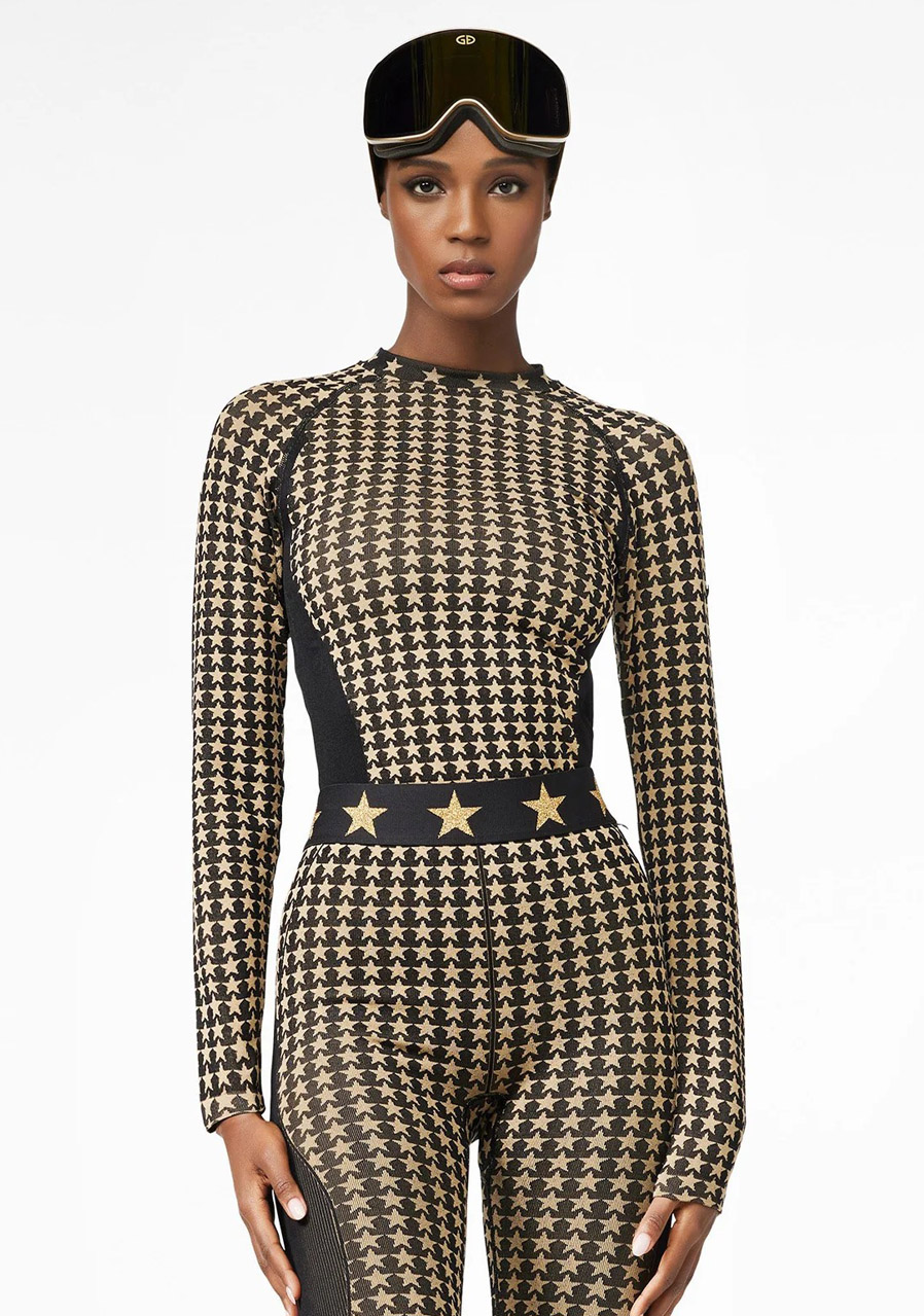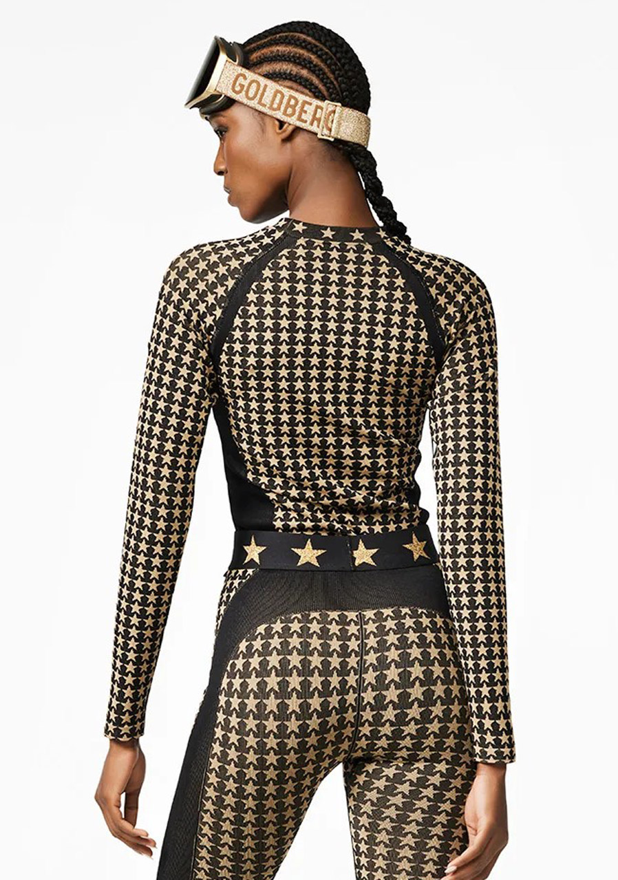 This slim fit tee is made from seamless knit for maximum comfort and freedom of movement. A round neckline and long sleeves complement the elegant silhouette, while flattering contouring panels accentuate the figure. The all-over star pattern adds a playful and stylish design element, and a metal label on the upper sleeve highlights the premium finish. For a complete set, we recommend pairing it with the seamless Celeste leggings GB372-60-254.