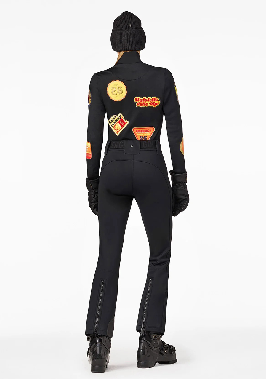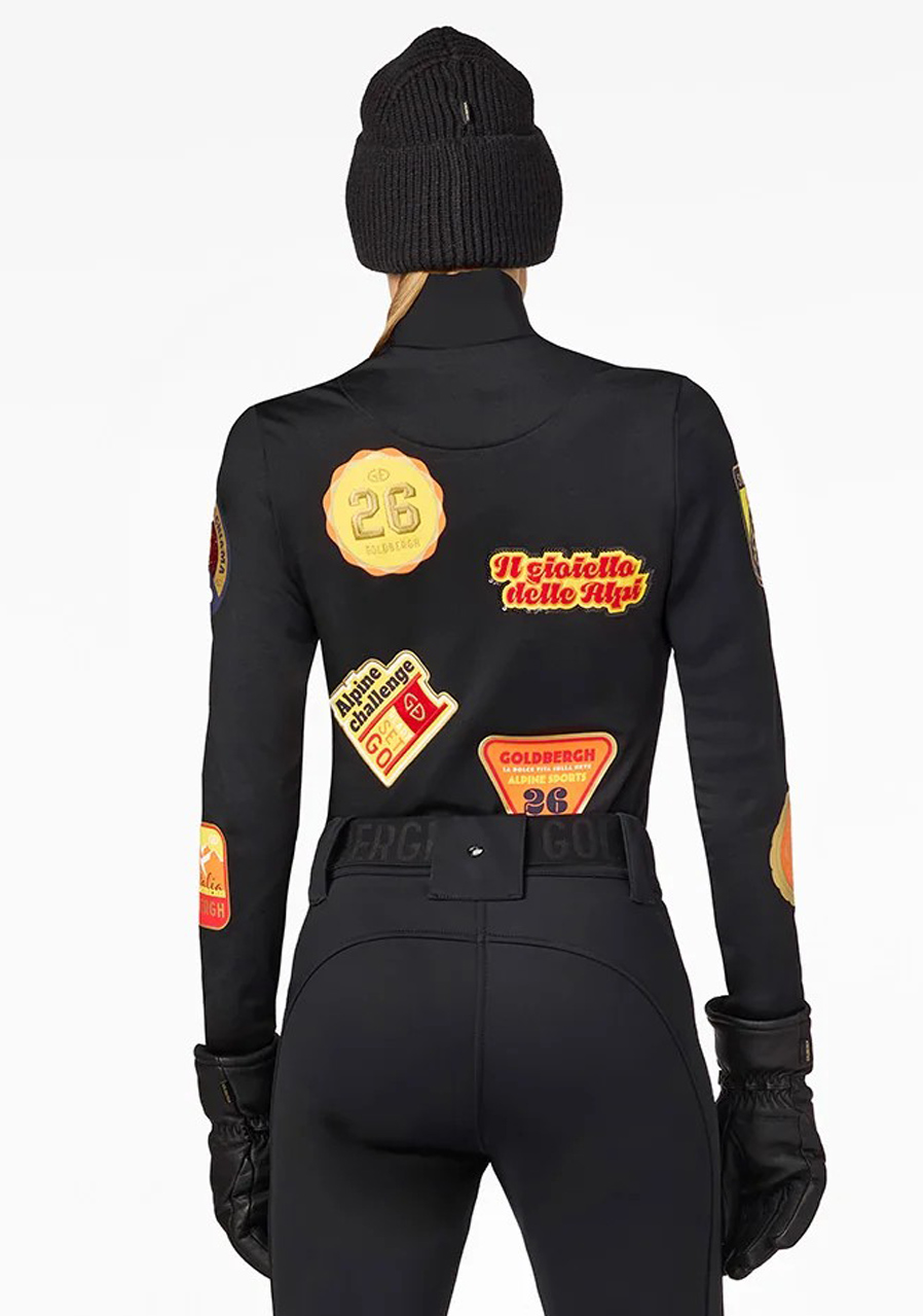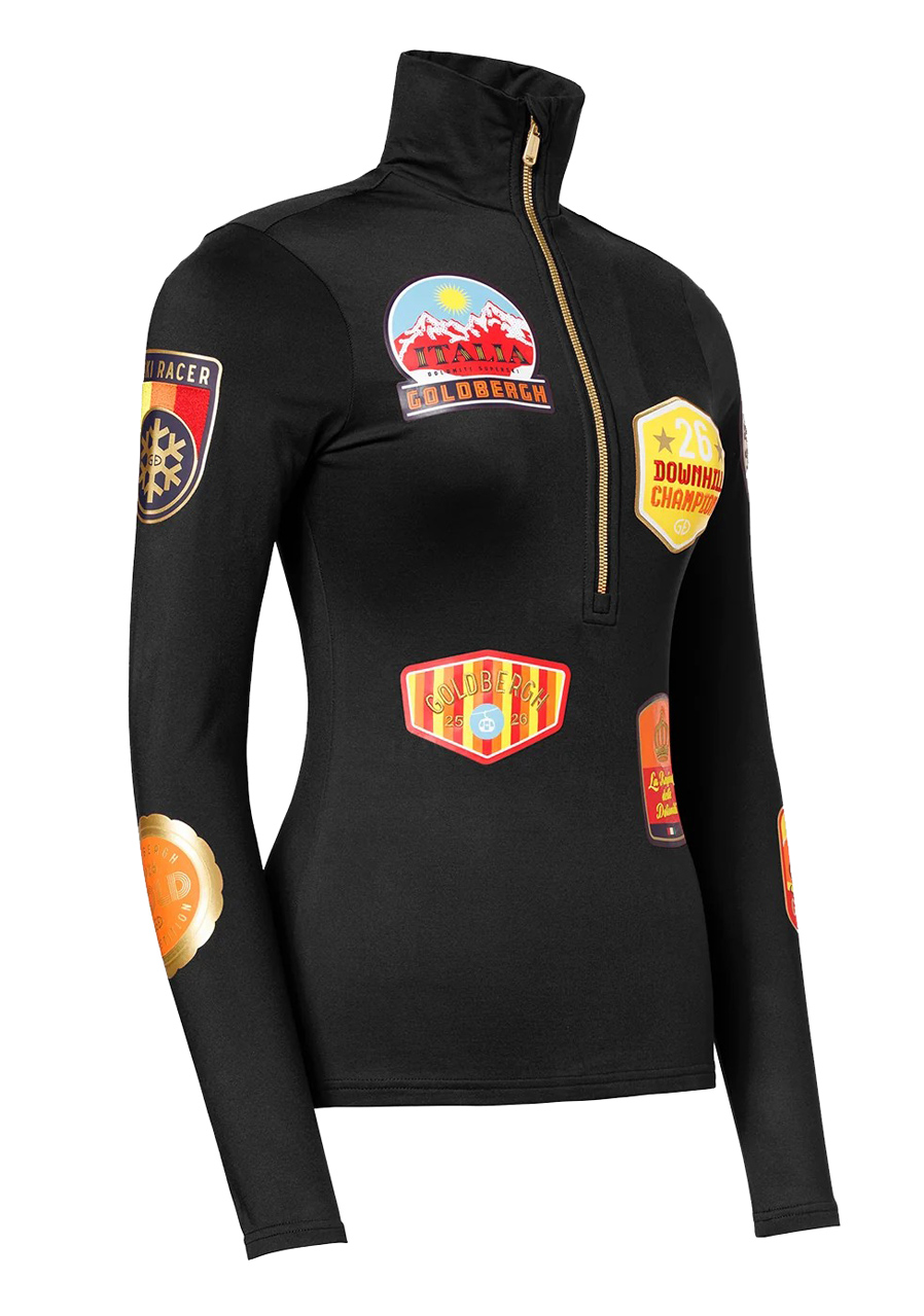This slim-fit top is made from stretch jersey with a soft brushed back, providing comfort and warmth. The model features a narrow stand-up collar, an extended half-zip, and is decorated with all-over printed graphics and embroidered badges for a stylish look. Thanks to the quick-drying fabric with moisture management and anti-odor treatment, this top is ideal for winter sports as well as leisure activities.
