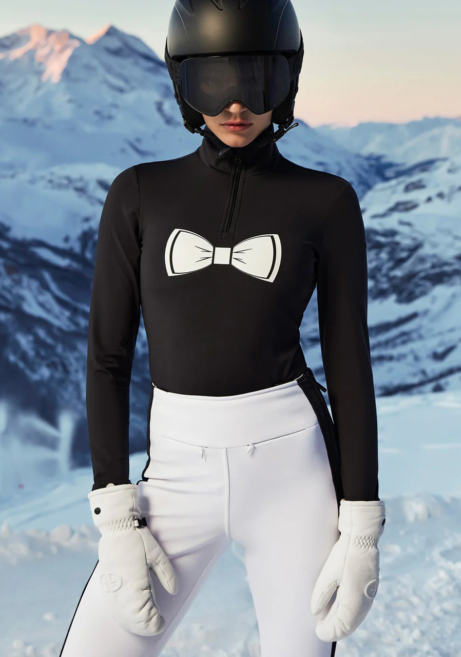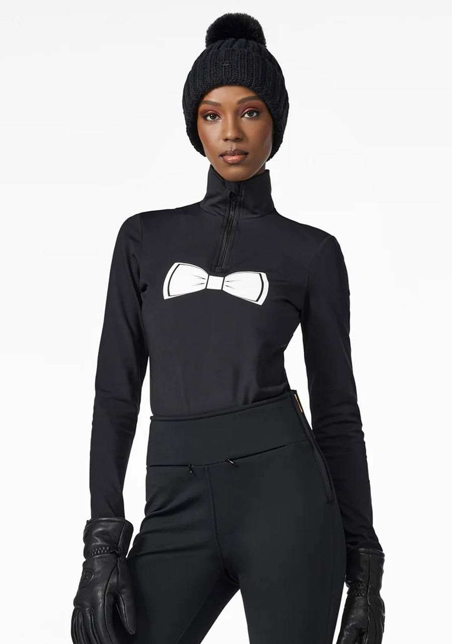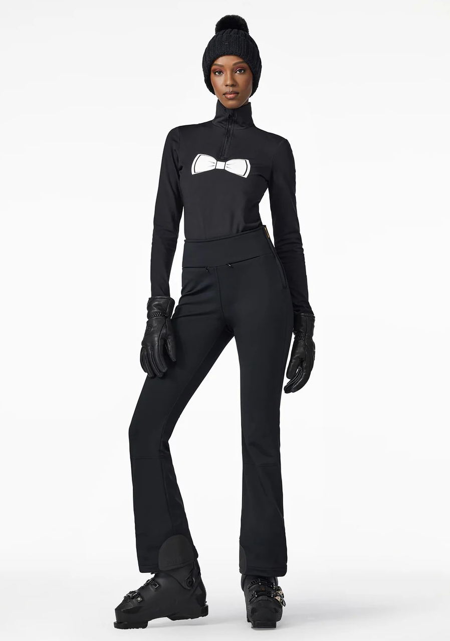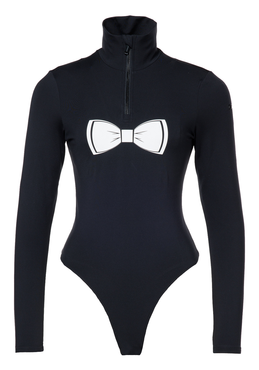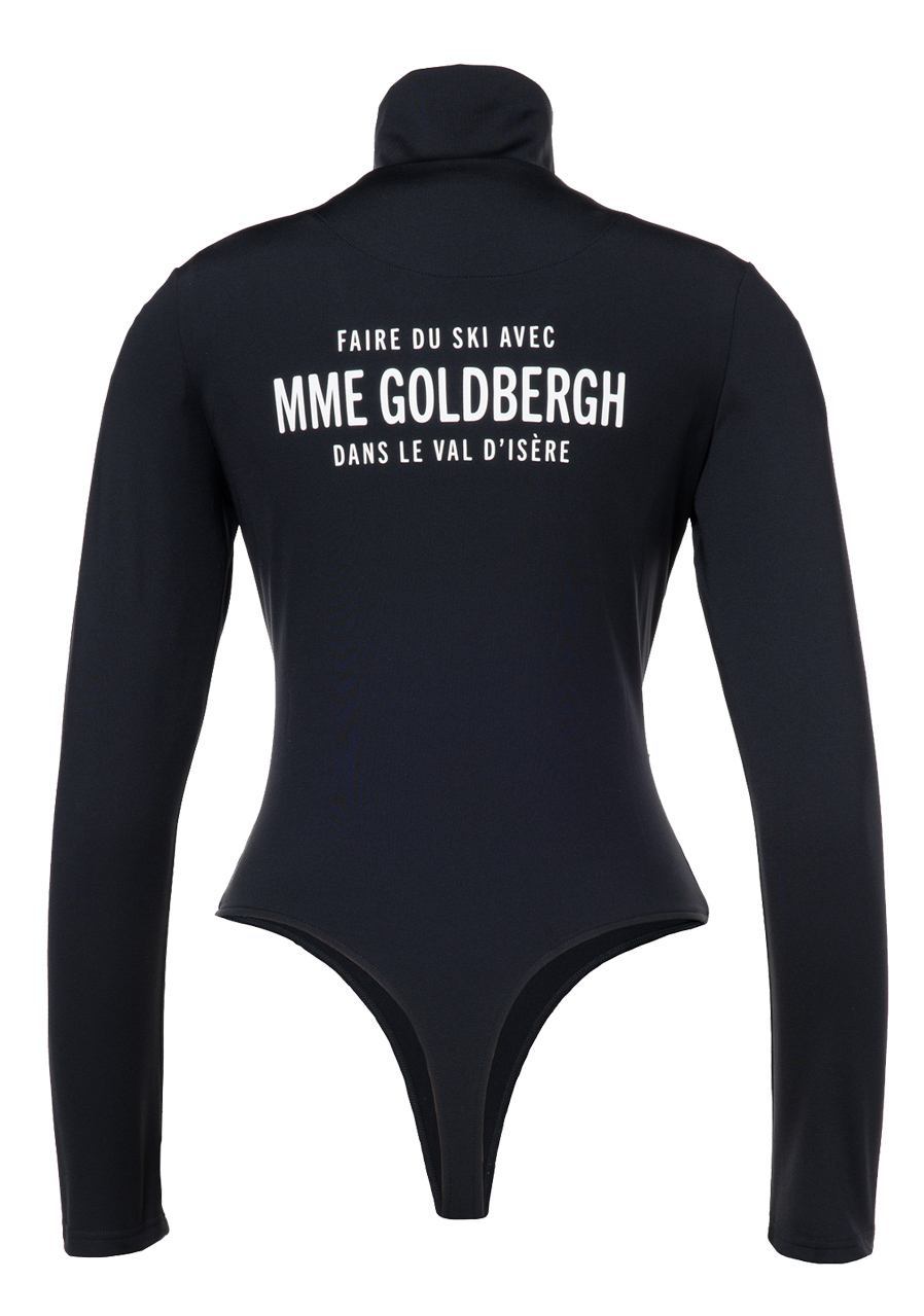 The Goldbergh Tux Ski Body in black is an elegant and stylish piece designed for winter sports enthusiasts, featuring a slim fit cut and functional performance. This design merges classic bodysuit elements—like the high collar—with sportswear features, ensuring comfort and freedom of movement while skiing. Made from high-stretch functional materials with a brushed interior and Powerstretch technology, it offers excellent breathability, moisture-wicking properties, and warmth retention. The fabric is quick-drying and treated with an anti-odor finish. Additional details include a front zip for easy dressing, a subtle Goldbergh logo on the back, and a minimalist design that pairs perfectly with other ski gear. An ideal choice for women seeking both style and performance on the slopes.