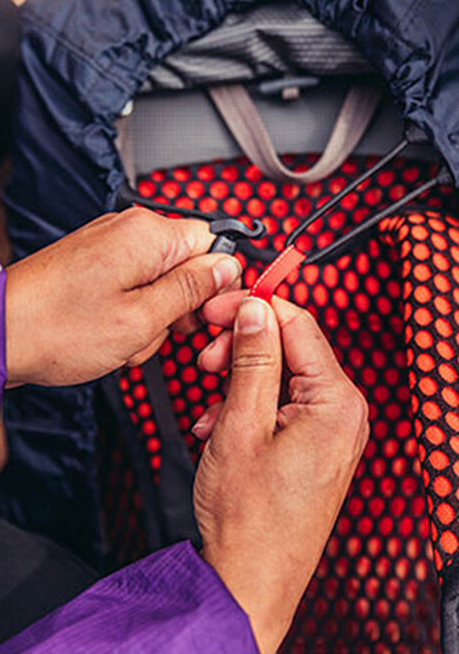 Integrated stuff sack – allows the raincover to be packed into its own pocket for easy storage