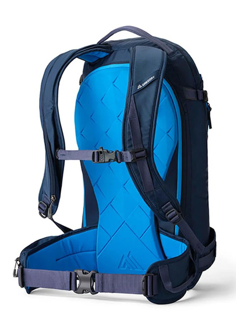 The Gregory Targhee 26 5.0 backpack is a reliable partner for freeride, ski mountaineering and winter hiking, where durability, functionality and smart space distribution are important. Thanks to its design adapted to movement in mountain terrain, it offers easy access to the main compartment through the back panel, a separate pocket for avalanche equipment and mounts for skis, snowboards or ice axes. A sophisticated back system with a thermoformed panel and padded shoulder straps ensures stability and comfort during prolonged wear. The backpack is made of durable materials that can easily handle harsh conditions and contact with snow or sharp edges of skis.