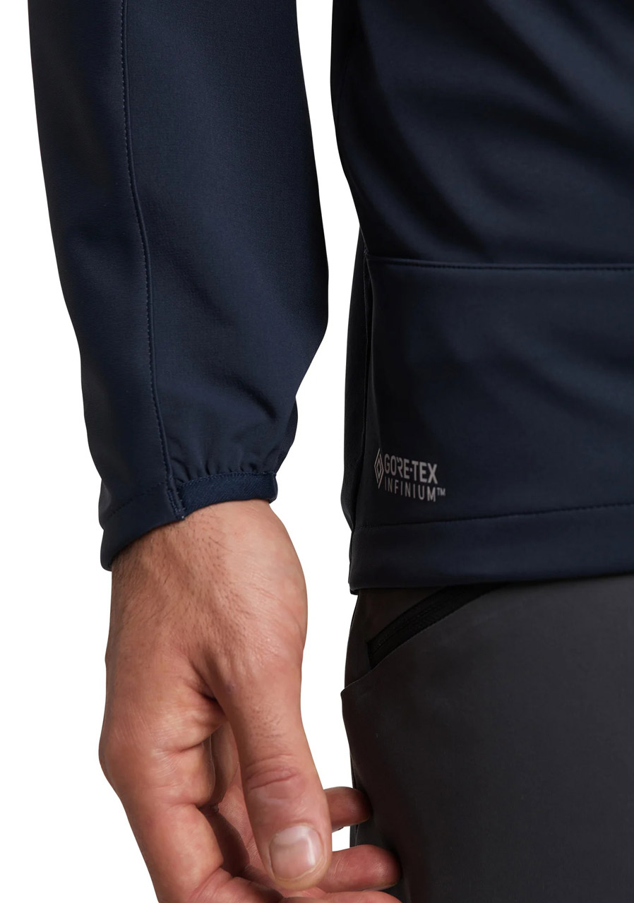 Pánská softshellová bunda vysoce technicky propracovaná, určená na skitouring aktivity a nejen na ně. Tato bunda je rozhodně tou správnou volbou a využijete ji určitě celoročně na velké množství aktivit. Je vyrobena z vysoce prodyšného GORE-TEX Infinium laminového na WINDSTOPPER membránu, který najdete na přední části, zbytek tvoří lehký, pružný a prodyšný softshellový materiál. Bunda skvěle sedí, téměř nic neváží a materiál je velmi příjemný na dotek. Tento model je opravdu univerzální, a tak dejte na naše doporučení a jděte do něj! Nebudete litovat!!! Materiál: GORE-TEX Infinium 3-vrstvý, 100% recyklovaný PES, laminovaný na WINDSTOPPER PTFE membránu, 210g/m2 RET: 6 90% recyklovaný PAD, 10% Elastan, odolný, 4-stranně elastický softshellový materiál, měkký a příjemný, 202g/m2 RET je metoda udávání prodyšnosti. Vyjadřuje prodyšnost látky (energii), která je nutná k odpaření určitého množství vody při jasně specifikované teplotě a vlhkosti. Čím je hodnota RET nižší, tím je látka prodyšnější. Prodyšnost je schopnost materiálu propouštět vodní páry produkované lidským tělem do okolního prostředí. Je velmi závislá na okolních klimatických podmínkách, zátěži a dalších faktorech. Podstatné je pro lidské tělo těchto par se přes oblečení zbavit, jinak by došlo k přehřívání organismu. Prodyšnosti výrazně napomáhá odvětrávání, proto se oblečení vyrábí s větracími otvory. RET < 6 – velmi dobrá ( < 20 000 g/m2 x 24 hodin) RET 6 – 13 – dobrá ( 9000 – 20 000 g/m2 x 24 hodin) RET 13 – 20 – uspokojivá ( 5000 – 9000 g/m2 x 24 hodin) RET > 20 – neuspokojivá ( < 5000 g/m2 x 24 hodin) Vlastnosti: - vyrobena z prodyšného lehkého GORE-TEX Infinium, který Vás ochrání před větrem i vodou - skvěle padnoucí kapuce - 2 přední kapsy na zip, 1 kapsa náprsní - spodní okraj bundy a konce rukávů ukončeny do pružné gumky - předtvarované rukávy - reflexní ošetření