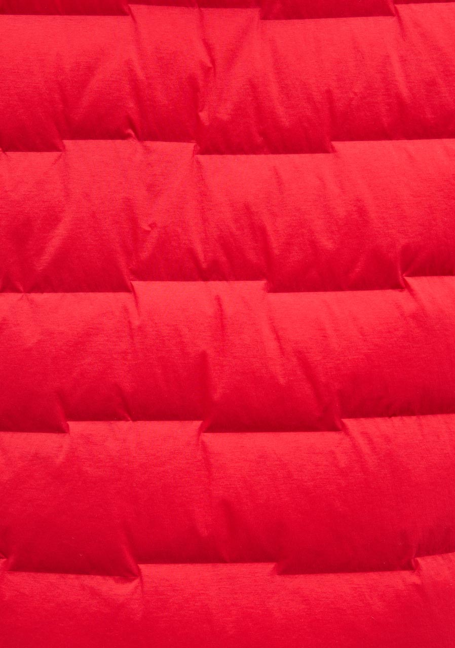 Komorová konstrukce plněná peřím s bezešvou technologií v oblastech ramen, podpaží, bočních panelů a zad pro minimalizaci studených míst.
