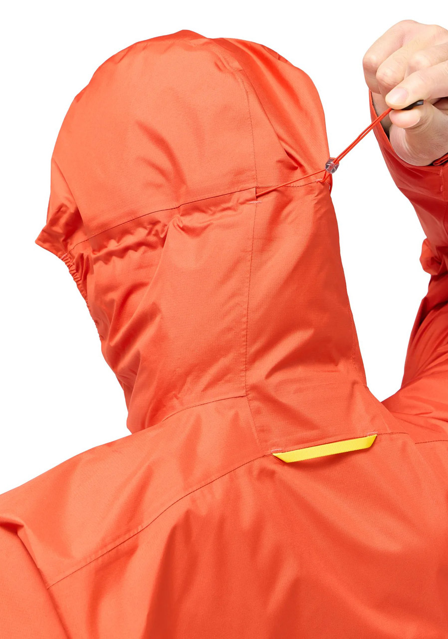 Its minimalist design, integrated technical features, and ergonomic fit ensure maximum functionality and freedom of movement, even in harsh weather. The environmentally friendly fabric is made from recycled polyester and treated with a PFC-free water-repellent finish.