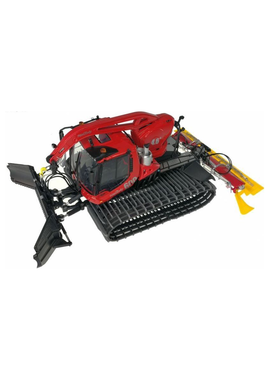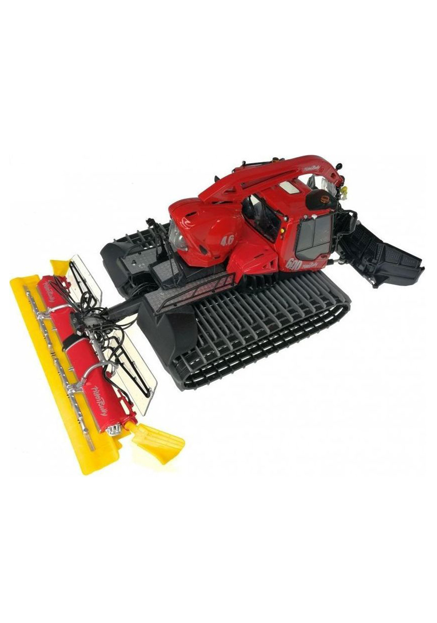 Construction: Detailed scale model of the PistenBully Level Red snow groomer equipped with a functional winch. Faithfully reproduces the shape, proportions, and color scheme of the real machine used for slope preparation, including front and rear working tools. Material: Metal and plastic components, realistically shaped rubber tracks, precise color printing, transparent cabin with detailed interior. Functions: Rotating front blade with adjustable tilt, rear tiller with movable parts, functional winch with cable, freely rotating tracks, realistic cabin details. Technical specifications: Scale according to original, model length approx. 40 cm (depending on accessory configuration), compatible with other Jägerndorfer model accessories. Advantages: Precision workmanship, functional moving parts, durable materials, high level of detail.