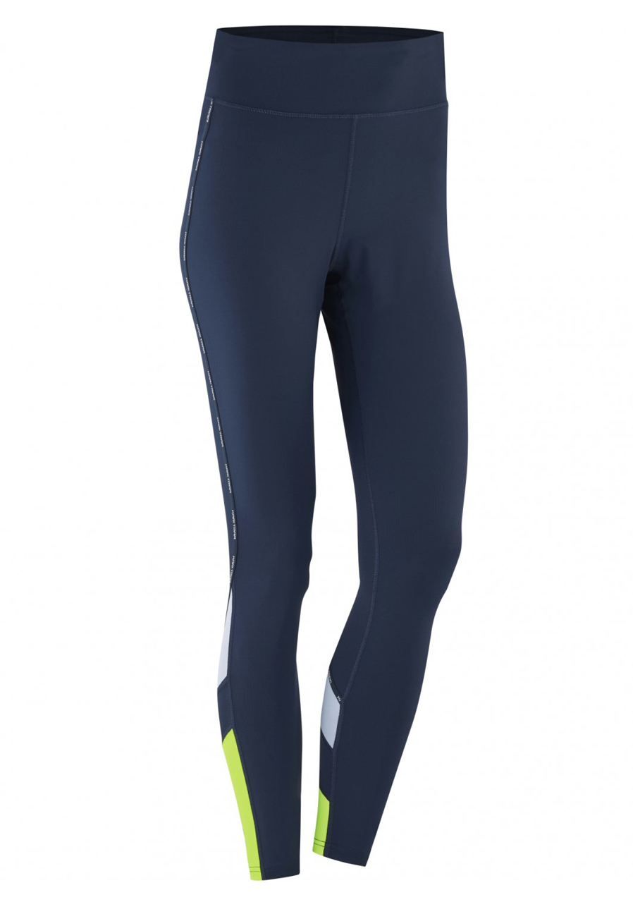 Details: Wide waistband with inner elastic, shaped seams, and subtle Kari Traa logo on the left thigh. Color: Marin – deep navy blue with subtle accents.