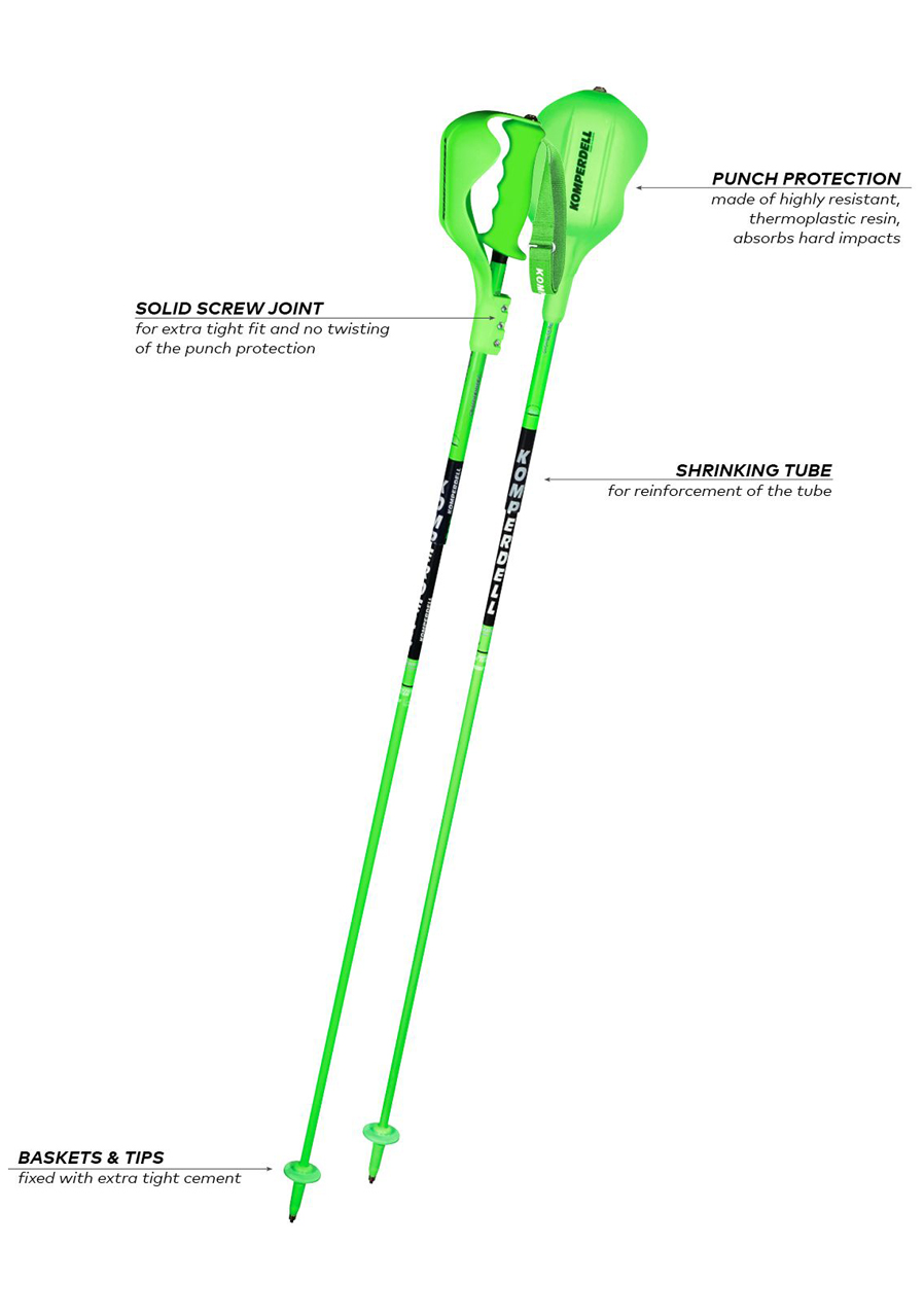 Lyžařské jamky Komperdell Nationalteam Carbon Slalom 12,3 jsoujsou ideální volbou pro náročné lyžaře a závodníky , kteří hledají lehkost, pevnost a špičkovou odezvu při slpři slalomových obloucích. Perfektní nástroj pro maximální rychlost a přesnost na trna trati!