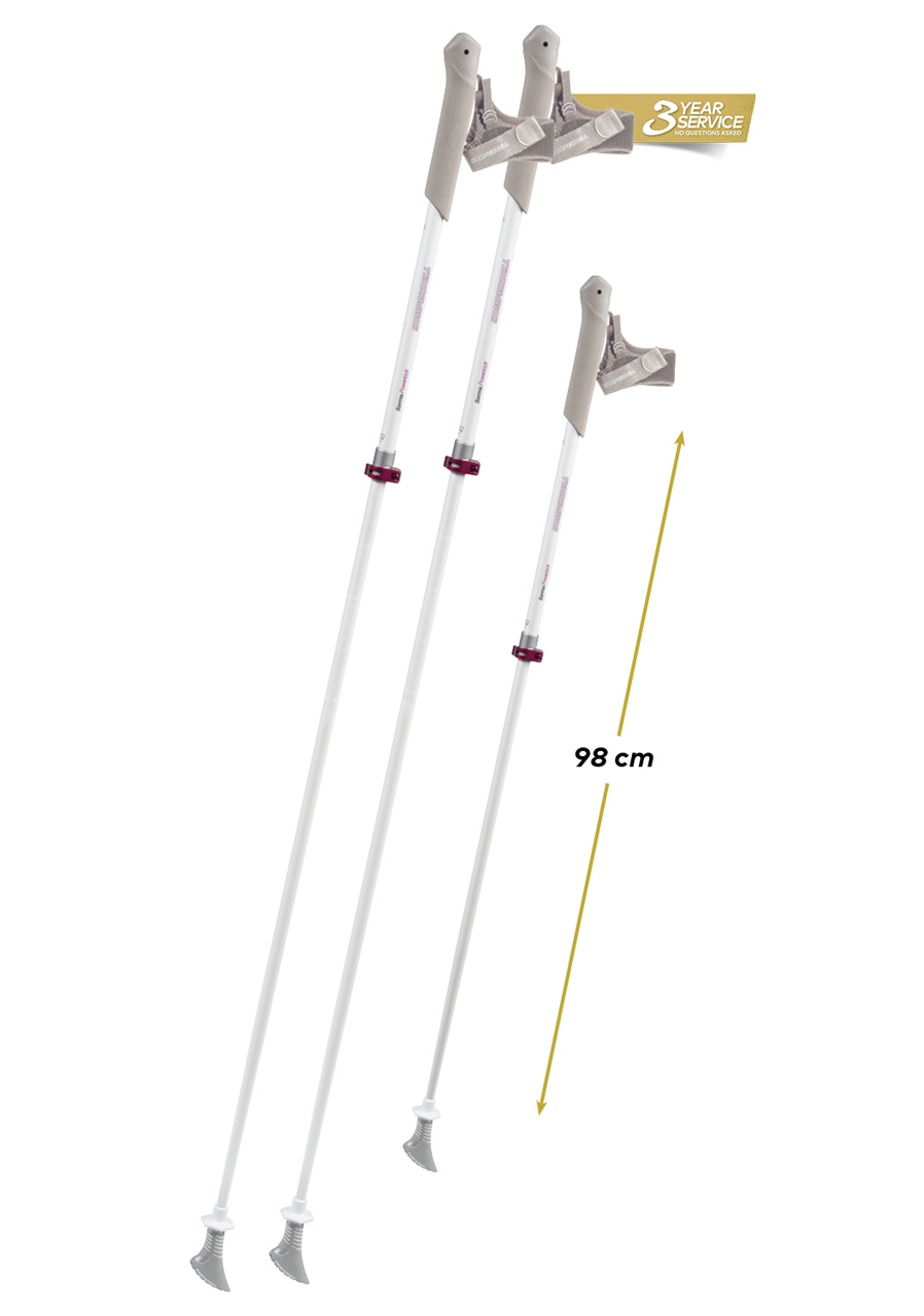 Dvoudílné, teleskopické hole pro nordic walking přináší dvě výhody oproti pevným, jednodílným: jsou skladnější, po složení mají délku jen 98 cm a jsou individuálně nastavitelné (od 105 cm - do 125 cm), lze je proto snadno půjčit partnerům, dětem, babičkám nebo kamarádům. Hole mají snadno a rychle odepínatelné poutko, špičkový a pevný Powerlock zámek a odolnou NW botičku.