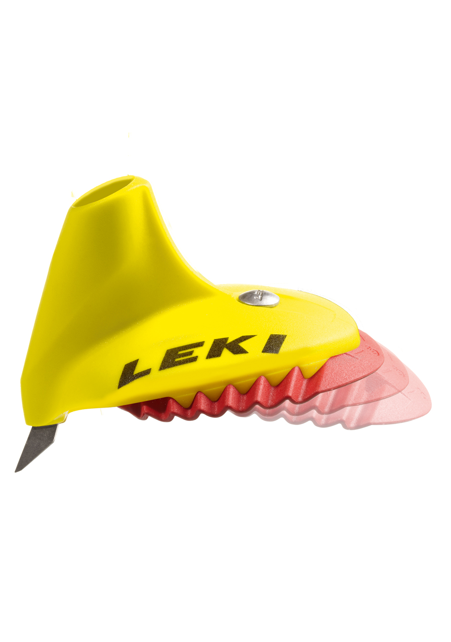 Replaceable adjustable saucers for cross-country sticks, for increased support area in deeper snow.