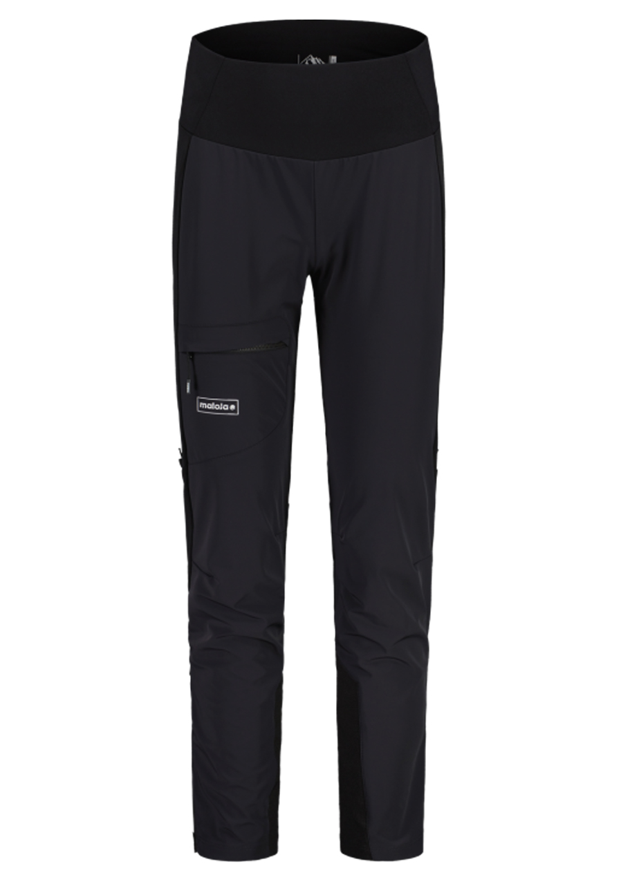 The Maloja LoseggM. trousers are designed for demanding outdoor activities in cold weather - ideal for hiking, cross-country skiing and ski mountaineering. They combine durability, flexibility and functional comfort in an elegant Deep Black design. The windproof softshell material with a brushed inner side provides reliable protection against the cold and at the same time ensures excellent breathability. The pre-shaped cut with ergonomic knees guarantees freedom of movement, while the elastic waist with adjustment and zippers at the ends of the legs make it easy to put on over shoes. Practical zippered pockets and reflective elements underline the functional character of these versatile trousers.