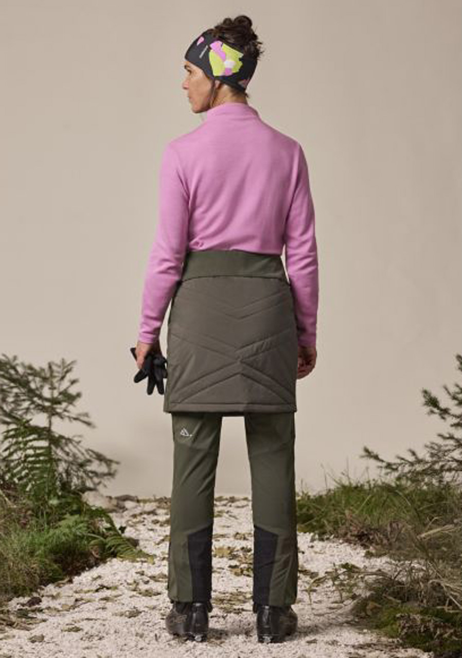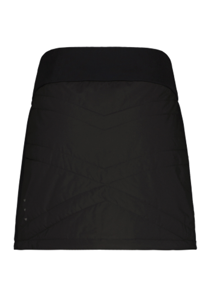 The Maloja HochfeilerM. women's skirt is the ideal accessory for winter activities and everyday wear in cold weather. Lightweight, warm and functional - it fits perfectly over leggings or skinny pants when cross-country skiing, hiking or after sports. The insulated padding made of recycled polyester provides excellent thermal comfort, while the windproof and water-repellent outer material with DWR treatment (PFAS-free) protects against cold and moisture. The full-length side zipper makes it easy to put on and take off. The elegant black design with a discreet Maloja logo underlines the stylish sporty look.