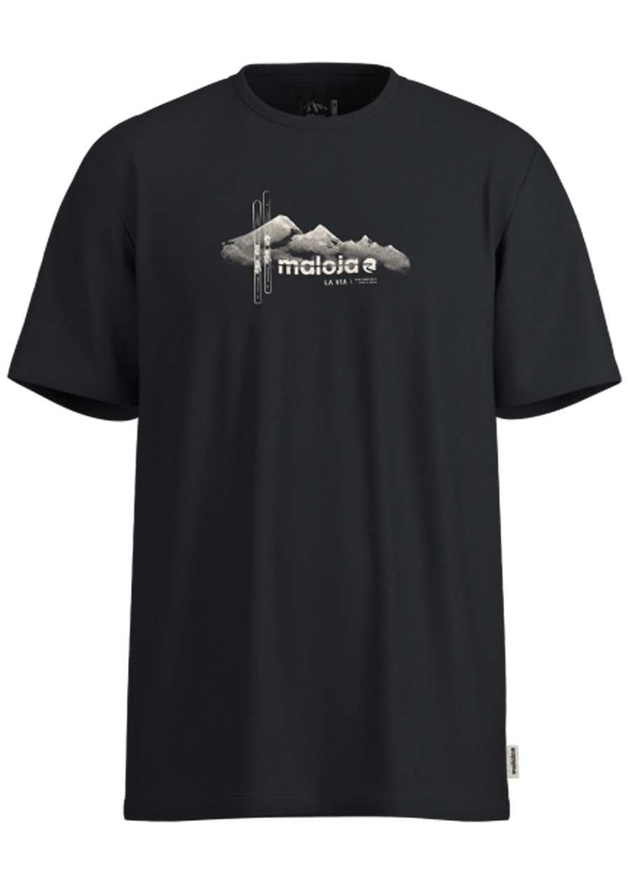 The Maloja WeisseggM. men's t-shirt is lightweight, technical and ideal for sports and everyday wear. Made of functional recycled polyester, which offers excellent breathability, effective moisture wicking and quick-drying properties. Thanks to the flexible material and ergonomic cut, it provides maximum freedom of movement during all activities - from hiking and cycling to running or training. The modern minimalist design in Deep Black is complemented by a subtle graphic print inspired by nature, typical of the Maloja brand.