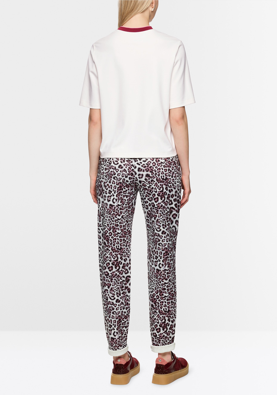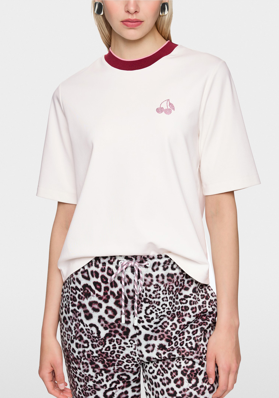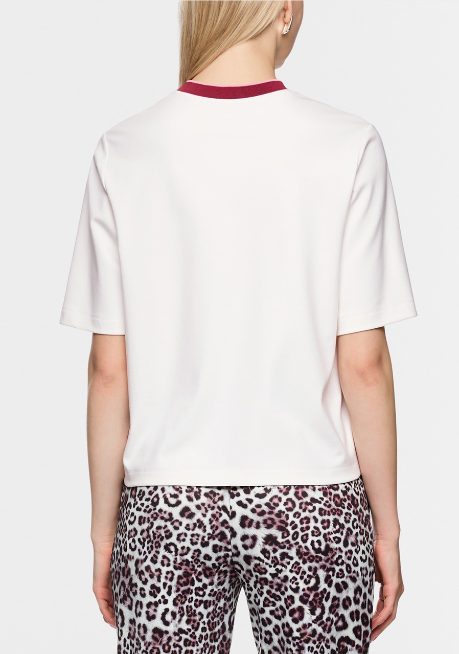 The Marc Cain AS 48.03 J54 women's T-shirt in Off-White is a clean, minimalist piece suitable for everyday wear and elegant-casual combinations. The pleasant, soft material ensures comfort all day long, the classic cut with short sleeves and a round neckline is easy to combine with a jacket, cardigan and jeans.