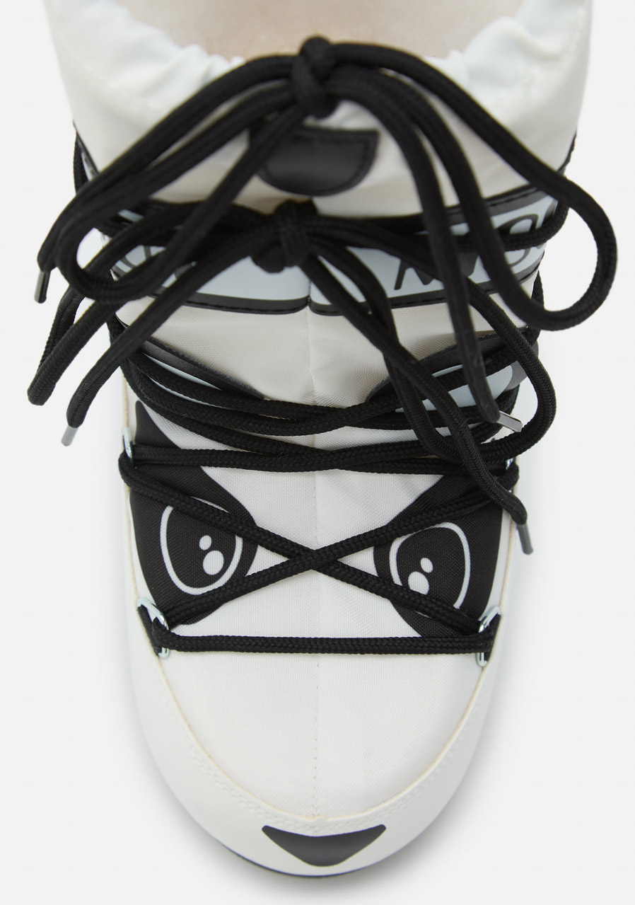 Moon Boot Icon Animal is specially designed for kids who love fun and original style. This model is based on the iconic Moon Boot line, but is adapted to children's sizes and complemented by a playful "animal" design. The water-repellent upper reliably protects against snow and moisture, the soft polyester lining provides comfort and warmth on every outdoor adventure. The lightweight rubber sole ensures a stable step even on snowy surfaces.