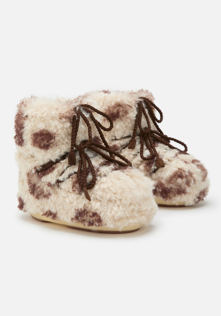 Moon Boot Icon Low Curly – stylish and comfortable winter boots A low-cut version of the iconic Moon Boot snow boot, it delivers a unique look with a fur-inspired upper and timeless design. Designed for cold winter days, the boots feature a warm lining and moisture resistance. The robust rubber outsole provides a sure step on snowy or slippery surfaces, while the water-repellent finish protects your feet from snow and moisture. The stylish look is complemented by a comfortable workmanship that has gained popularity around the world.