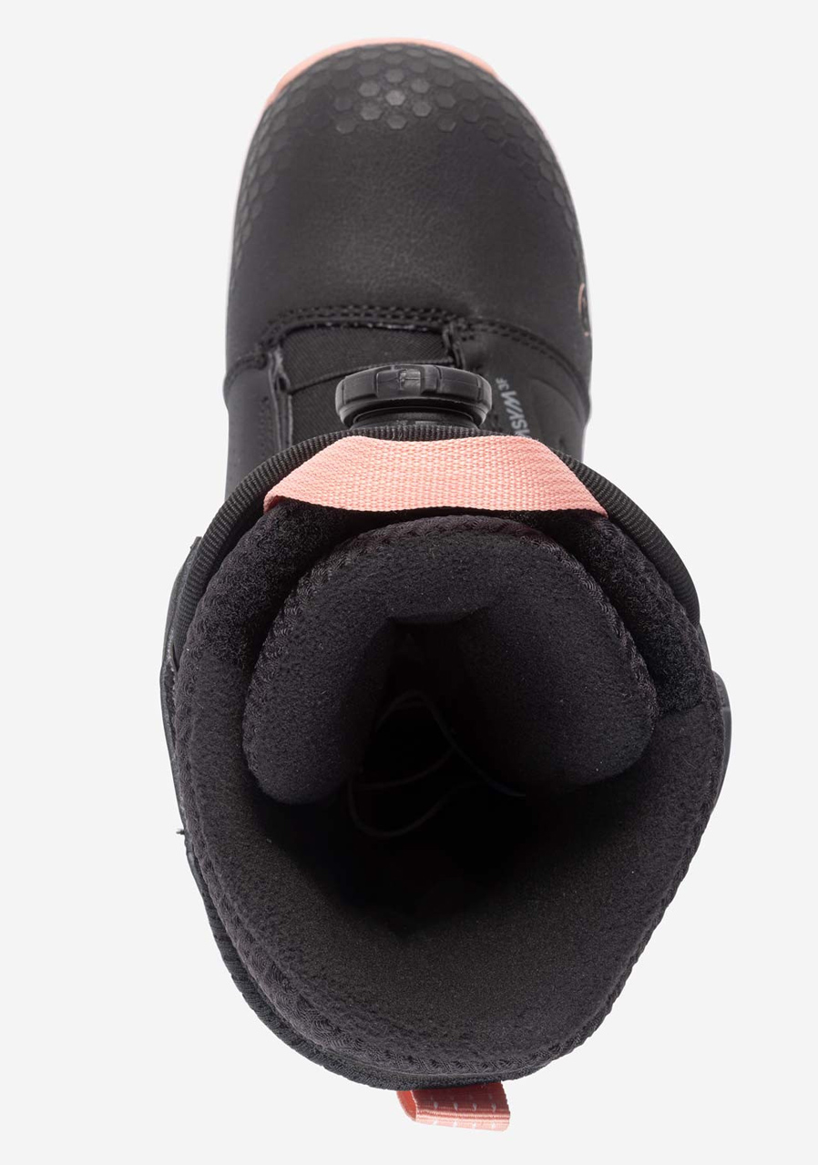 ✅ Dual BOA® Fit System – Dvojité kolečko BOA® umožňuje precizní utažení zvlášť pro horní a dolní část boty. ✅ Střední flex (6/10) – Perfektní kombinace volnosti a opory, ideální pro all-mountain i freeride jízdu. ✅ Vnitřní botička Silver-Level Heat Moldable – Tepelně tvarovatelná botička s pohodlnou pěnou pro maximální přizpůsobení tvaru chodidla. ✅ Podrážka B.F.T. Gravity 2.0 – Odolná gumová podrážka s EVA pěnou pro skvělou trakci a tlumení nárazů. ✅ 3D Molded Single-Density Footbed – Anatomicky tvarovaná vložka pro lepší podporu a odpružení. ✅ Asymmetrical Articulated Cuff – Speciální konstrukce pro lepší pohyb a přirozený ohyb kotníku. ✅ Odlehčená konstrukce – Minimalizuje únavu nohou a zajišťuje celodenní komfort. ✅ Elegantní černý design – Nadčasový vzhled, který ladí s jakýmkoli snowboardovým vybavením.