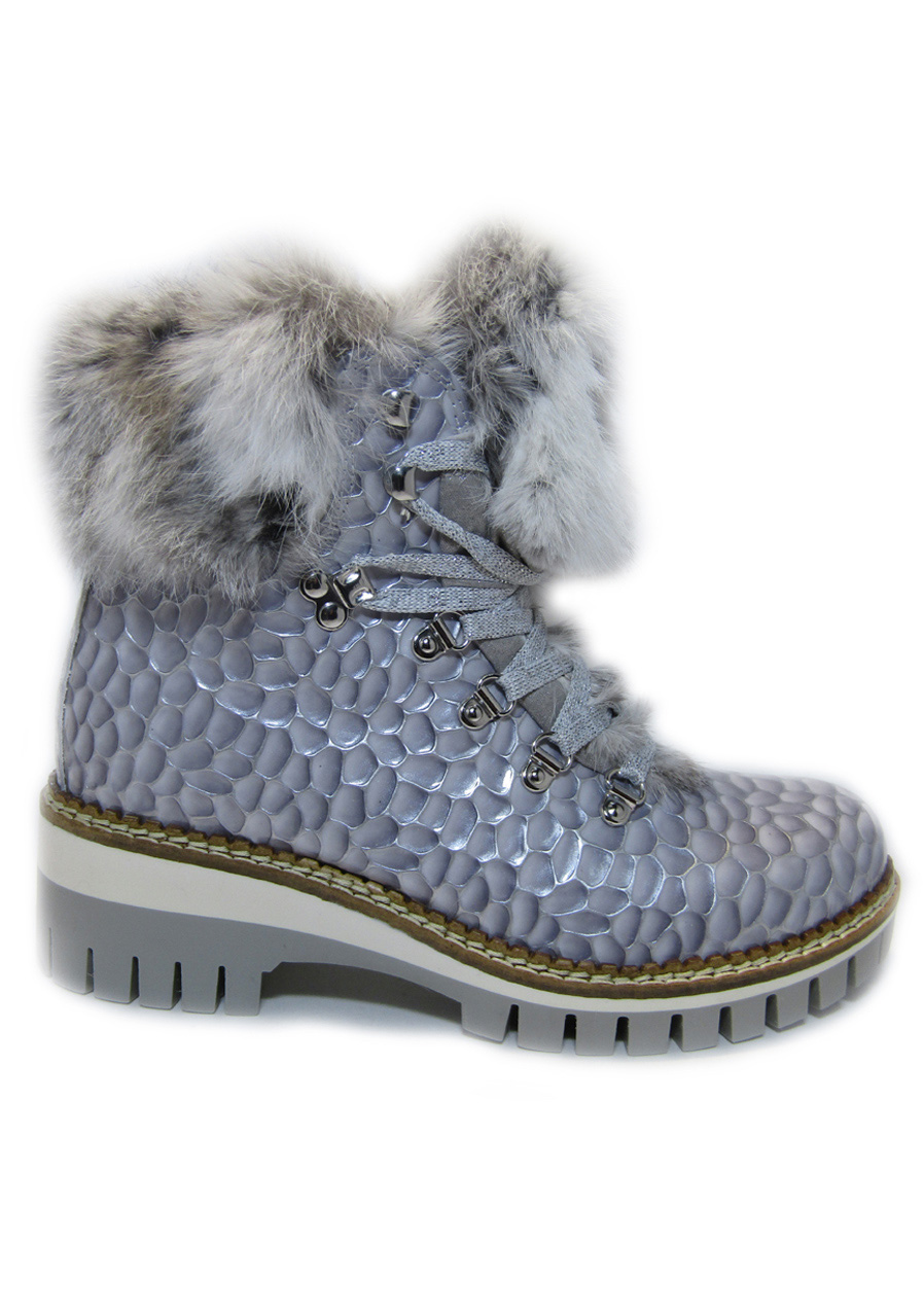 These pearlescent ankle boots combine a shiny patent leather upper (pelle st. vernice) with a warm trim of genuine rabbit fur (Lapin), which provides comfort and protection from the cold. The practical cut and quality workmanship ensure comfort for everyday wear in the city and during leisure activities. The elegant pearlescent tone gives the shoes a sophisticated and timeless look.