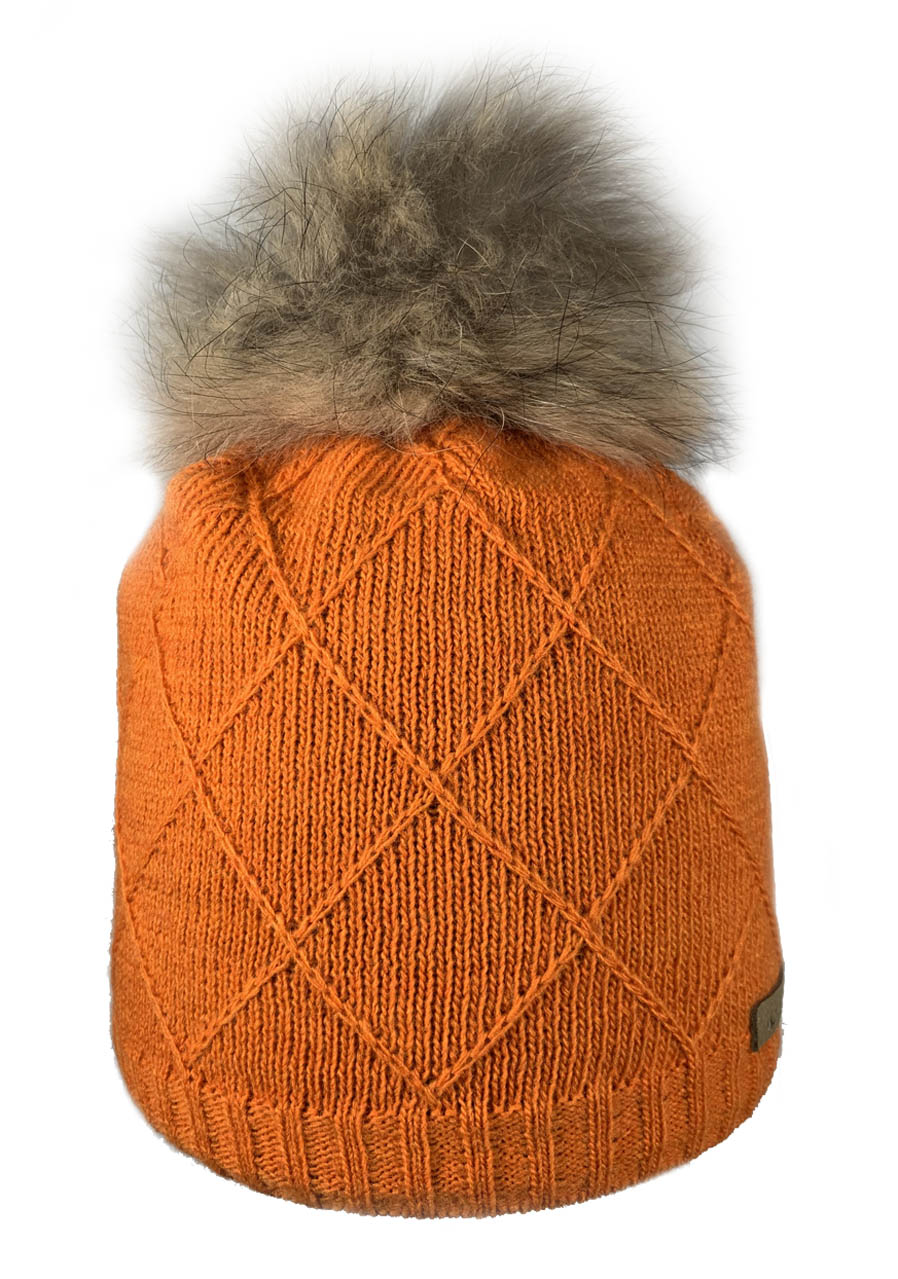 - women's knitted hat with fur pompom