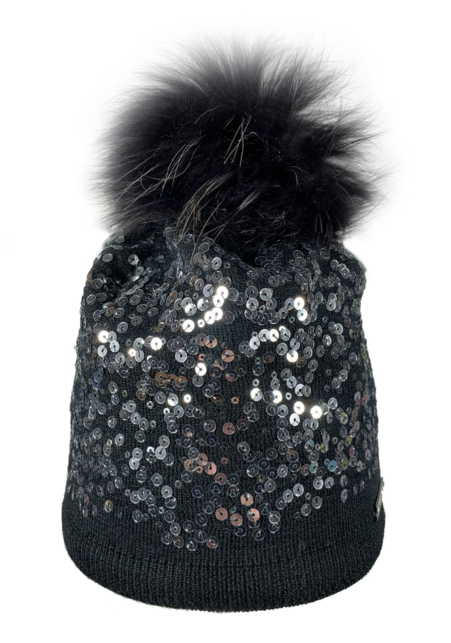 - women's knitted hat with fur pompom