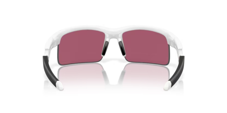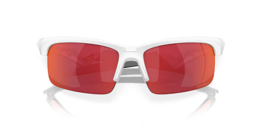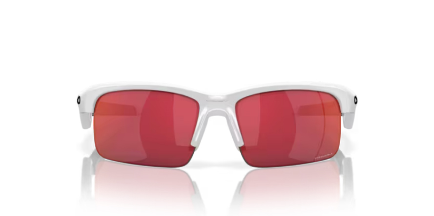 The Oakley Capacitor in Polished White offers youth-focused sports performance and aesthetics in one lightweight design. Inspired by the Resistor model, it features a semi-rim dual-lens setup for improved vision and durability. The frame is crafted from O Matter™, ensuring long-wear comfort and impact resistance. Prizm™ Field lenses with 15% light transmission enhance contrast and are ideal for bright light conditions. Unobtainium® nose pads and temple grips provide a secure fit even during sweaty or high-motion activities.