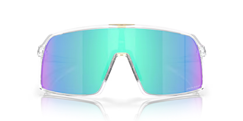 Oakley Sutro Sunglasses in Clear with Prizm Sapphire Lenses are designed for active athletes who demand top performance, comfort and style. The solid monocular provides a wide field of vision and excellent protection from wind, dust and sunlight. Prizm™ Sapphire technology improves contrast, sharpness and color perception, so every detail on the road and in the city is perfectly visible. The lightweight frame made of durable O Matter™ material and non-slip Unobtainium® tips ensure a stable hold even during intense movement.
