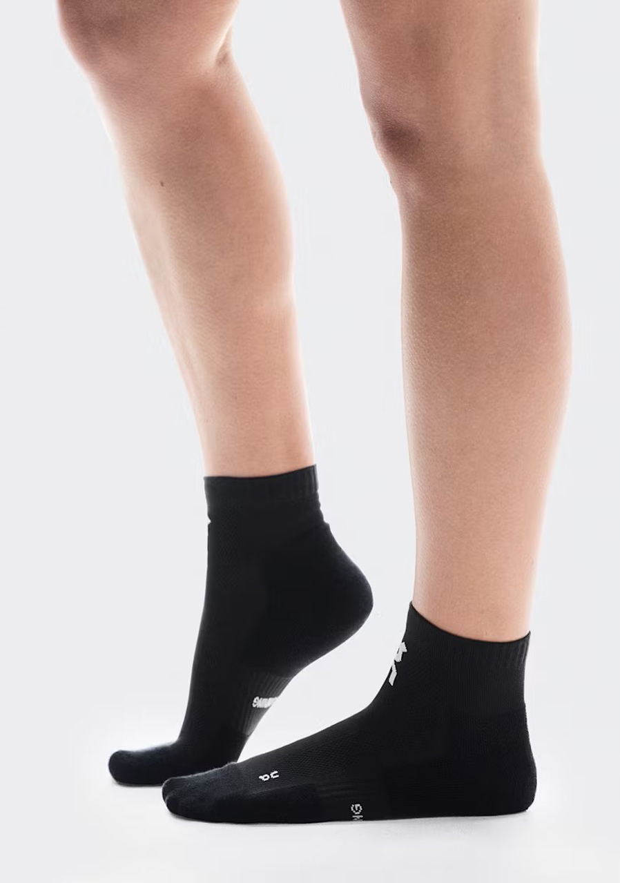 Women's On Running Core Run Sock Mid socks in black are an ideal choice for regular running and other sports activities. The mid-rise cut provides optimal support, while the functional material ensures breathability, moisture wicking and a pleasant feeling of dryness even during prolonged exertion. Thanks to the elastic construction, the socks adapt perfectly to the foot and stay in place without unpleasant bunching. The package contains 2 pairs.