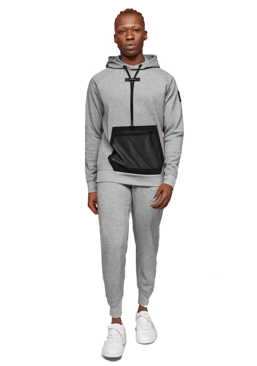 Parameters: Material : 82% recycled polyester, 13% cotton, 5% elastane Inner finish : brushed fleece for extra softness Cut : regular fit Hood : ergonomic, with elastic hem Pockets : kangaroo pocket Color : Grey Suitable for : training, regeneration, everyday wear, travel