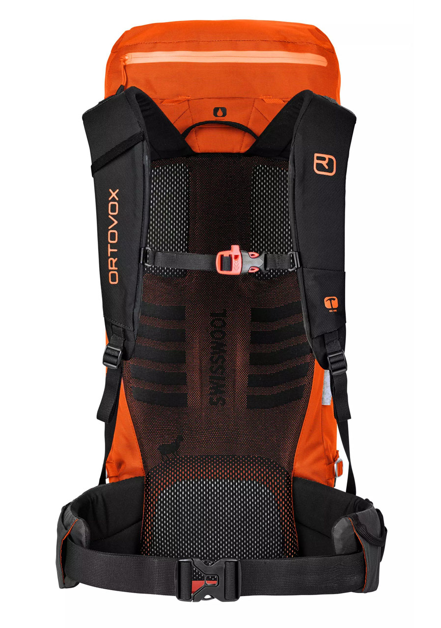 Features Lightweight and durable backpack for alpine tours and ski mountaineering Short back length (S) designed for smaller body types Removable elements (lid, hip belt, frame) for weight reduction Top and side access to main compartment Attachment for skis (side), ice axe, poles, and rope Helmet net included Separate pocket for map and essentials Hydration system compatible Chest strap with emergency whistle Swisswool Full Contact back system for ventilation and fit