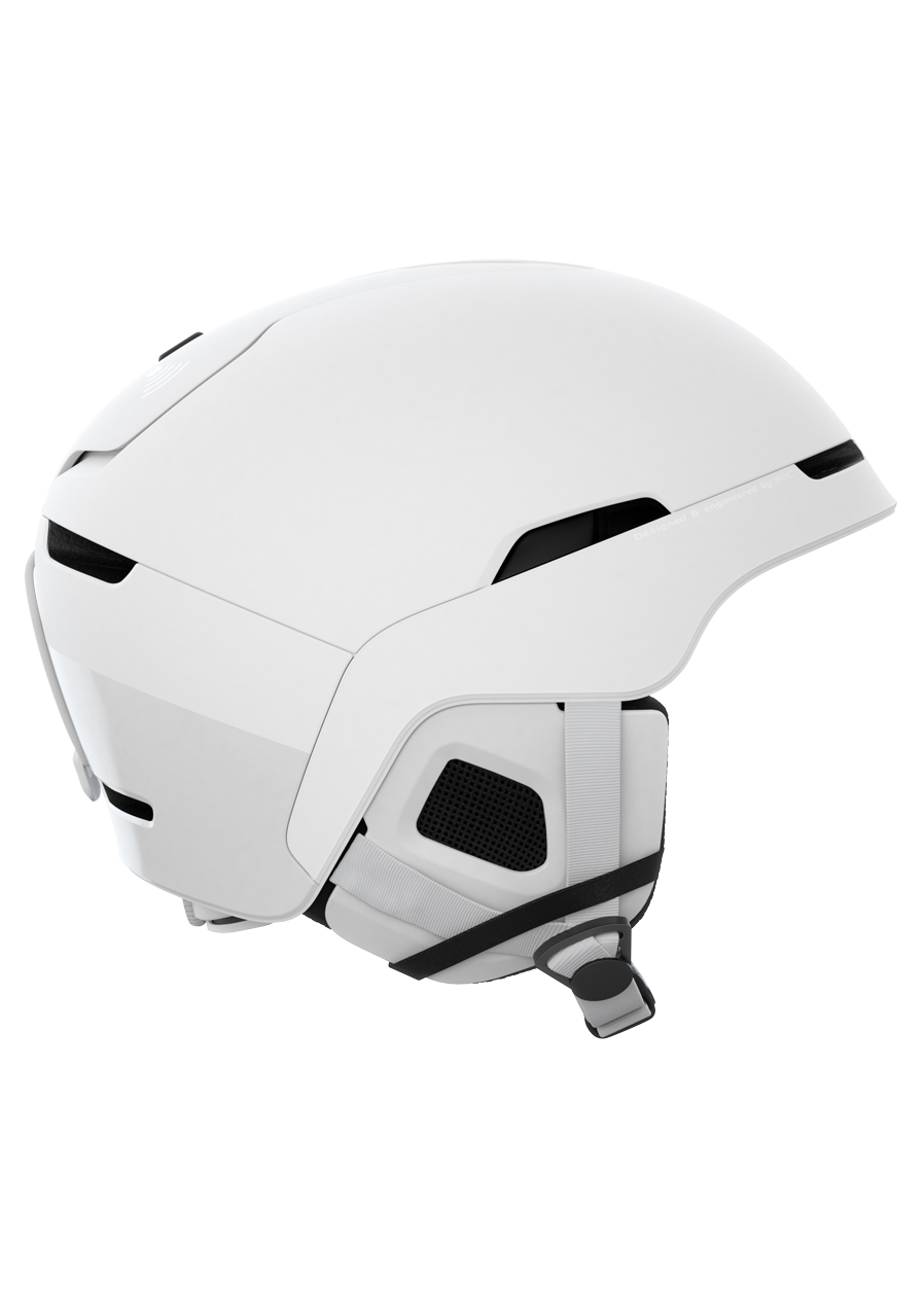 The POC Obex BC MIPS ski helmet in a sleek, matte Hydrogen White finish is designed for freeride and backcountry skiing where safety and reliability are key. The lightweight in-mold construction with a polycarbonate (PC) outer shell and EPS inner core provides excellent impact absorption and durability. The MIPS (Multi-Directional Impact Protection System) adds an extra layer of brain protection in angled impacts.