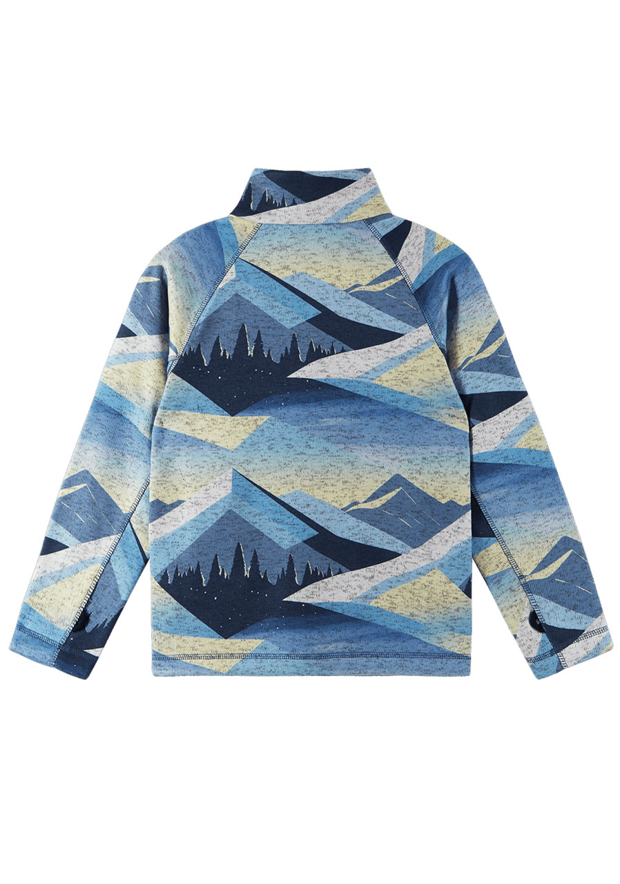 The Reima Niksini children's fleece sweater in Blue Ocean is an ideal choice for cold days outside and as a mid-layer under a jacket. The soft fleece is pleasant to the touch, provides great thermal comfort, and is lightweight and breathable, so children feel comfortable even during active movement. A practical full-length zipper with chin guard makes it easy to put on, while elastic hems on the sleeves and bottom hem ensure a good fit. This versatile piece is suitable for both everyday wear and sports activities.