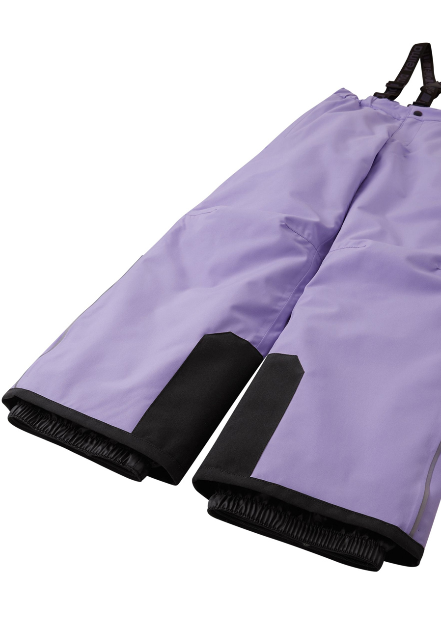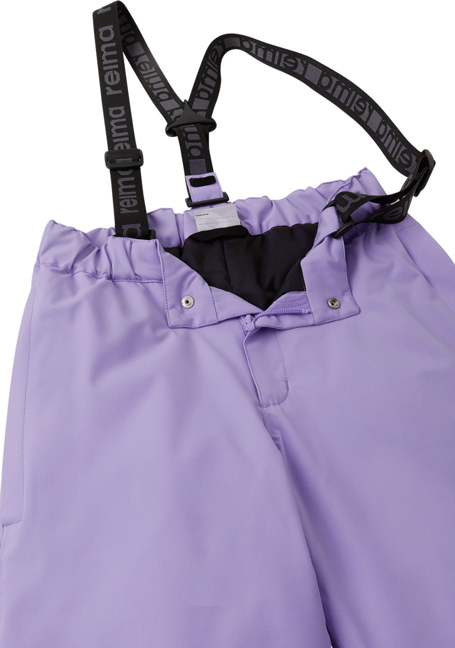 Reima Proxima children's winter trousers in the delicate purple shade Blooming Lilac are a reliable choice for snow games and winter sports. The durable outer material with a functional membrane protects against wind and moisture, while the warm filling ensures warmth even during the whole day outside. The breathable construction prevents overheating, and thanks to the adjustable hems and higher waist, the trousers fit well and do not constrict anywhere. Reinforced leg ends and snow cuffs provide extra protection and extend the life of this popular model.