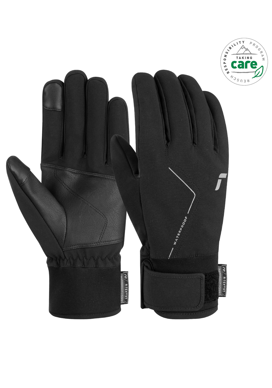 The Reusch Diver X R-TEX® XT TOUCH-TEC™ Junior children's gloves in Black/Silver offer great protection against cold and moisture in a modern, technical design. Thanks to the R-TEX® XT membrane, the gloves are fully waterproof, windproof and breathable, ensuring warm and dry hands even during intensive skiing. TecFill™ insulation maintains optimal thermal comfort, while the soft lining provides maximum comfort. TOUCH-TEC™ technology allows you to operate touch screens without taking off the gloves. The ergonomic cut, reinforced palm and Velcro cuff guarantee a perfect fit and easy dressing - the ideal choice for active children.