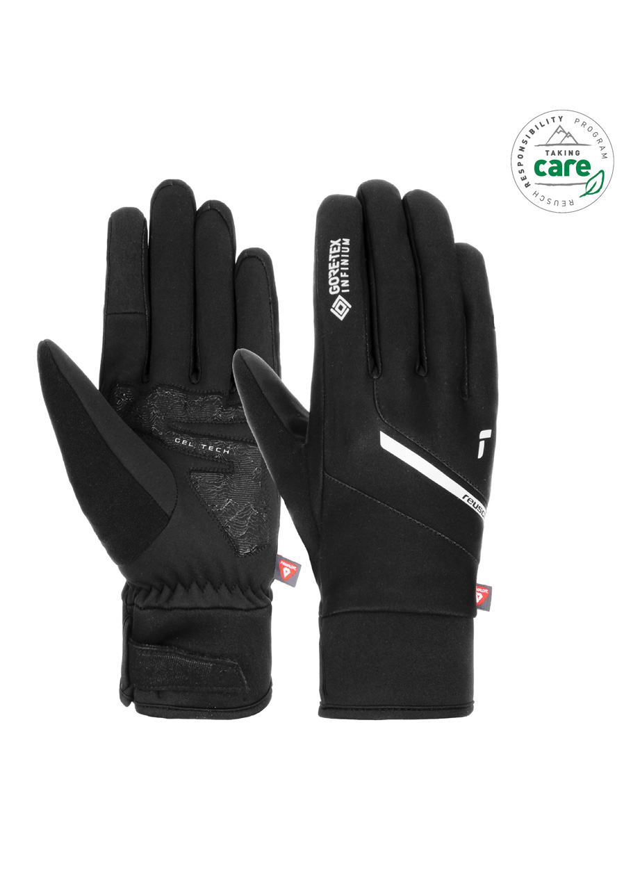 Reusch Versa GORE-TEX INFINIUM™ LF gloves in the Black/Silver color combination are the perfect choice for active athletes and everyday wear in cold weather. GORE-TEX INFINIUM™ technology guarantees complete wind resistance, high breathability and pleasant thermal comfort during any activity. The light and flexible material ensures a precise fit, freedom of movement and high finger sensitivity. Thanks to the touchscreen compatible surface, you can easily control smartphones or watches without taking off your gloves. The modern design with discreet Reusch logos underlines their universal and sporty-elegant character.
