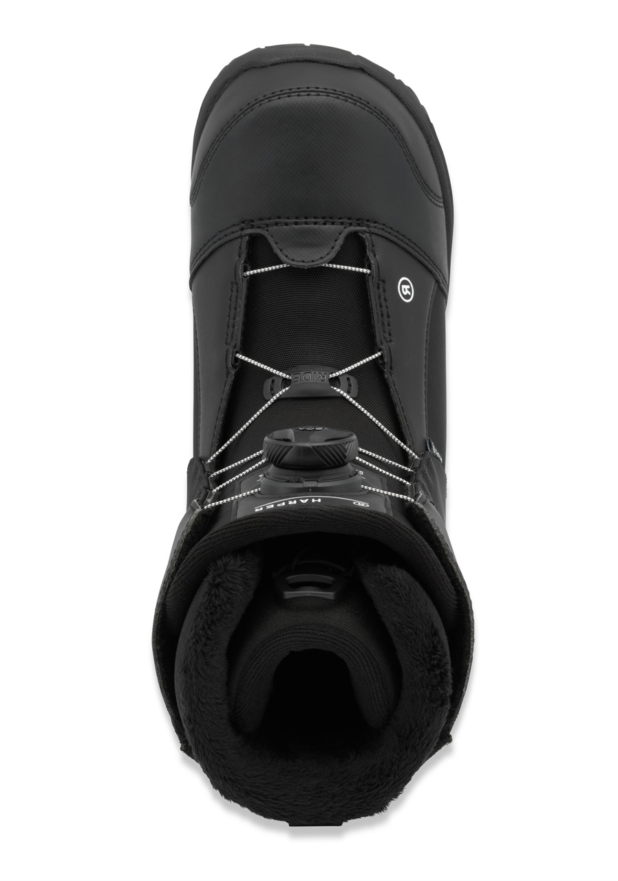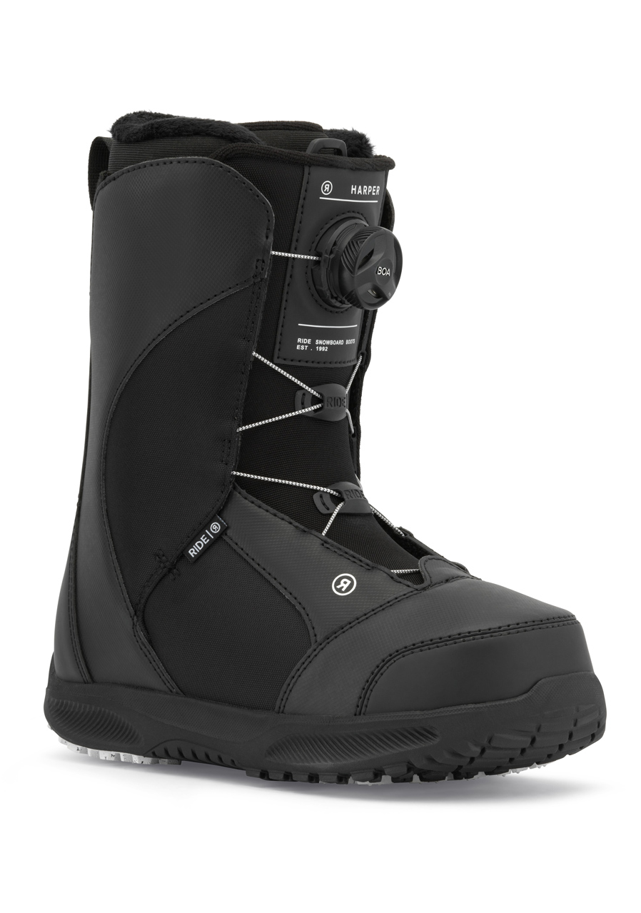 The RIDE Harper BOA Women's Snowboard Boots in Black are the perfect choice for beginner and intermediate riders looking for comfort, easy control and reliable performance on the entire mountain. The H4 BOA® Coiler Fit System tightens easily and evenly with a single turn of the dial, ensuring a perfect fit. The Intuition™ Plush Foam Liner heat-molds to the shape of the foot and, together with the In2grated™ construction, provides maximum comfort and lightness. The Grip Lite Sole and +SLIME Midsole provide reliable traction, excellent cushioning and long-lasting durability even in cold conditions.