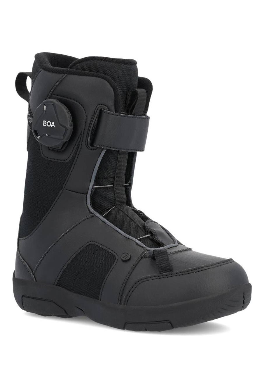 The Ride Norris Boa snowboard boots in black are designed for the youngest riders who are starting to discover the magic of snowboarding. Thanks to the Boa® Fit system, tightening and loosening the boot is very easy and even children can do it themselves without the help of adults. The soft flex makes the first turns easier and provides comfort even when worn all day. The soft foam inner boot ensures thermal comfort and a pleasant feeling, while the lightweight sole guarantees stability and a sure step when moving on the snow. The Norris model is a great choice for children's beginnings thanks to the combination of simplicity, comfort and reliability.