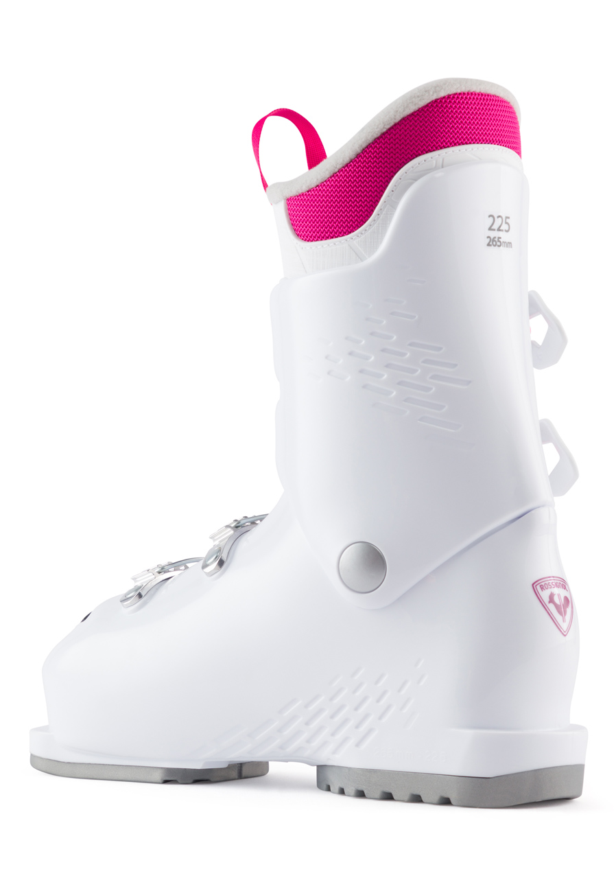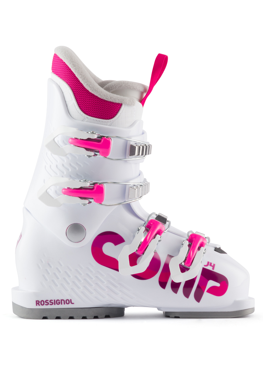 Dětské lyžařské boty Rossignol COMP J4 jsou navrženy tak, aby přesně padly na dětskou nohu a poskytovaly maximální pohodlí a oporu. Systém čtyř přezek umožňuje snadné doladění obalení nohy, zatímco vnitřní botičky Comfort Fit jsou měkké, zateplené a předtvarované pro celodenní komfort na svahu. Nová konstrukce skeletu podporuje zlepšení techniky mladých lyžařů v každém oblouku. Boty jsou GripWalk kompatibilní, což umožňuje výměnu podrážek pro lepší trakci a pohodlnější chůzi.