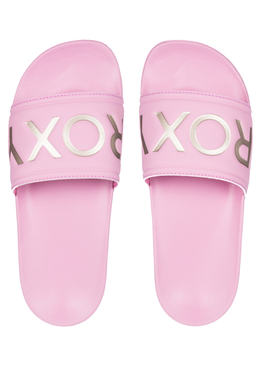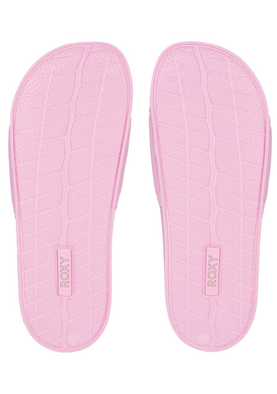 The elegant pink Roxy Slippy lI slippers are made of high-quality recycled material that is comfortable to wear. The slightly anatomically shaped insole is comfortable and you won't have to worry about bruises or blisters. The instep strap has an embossed Roxy logo, which gives the shoes a style typical of this brand. The sole has an anti-slip design, including the brand logo.