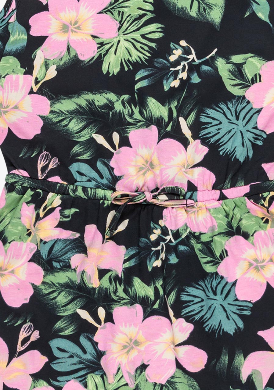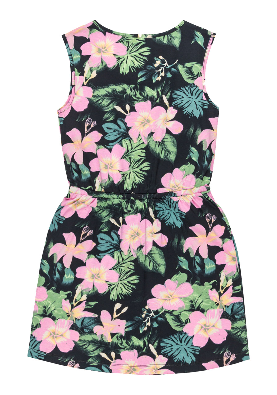 Roxy SURFS UP PRINTED sleeveless children's dress , which girls will appreciate especially on hot summer days. The floral pattern on a black background gives the dress a unique modern touch that is stylish and elegant. High-quality material that is flexible and pleasant to the touch, absorbs moisture well and is comfortable to wear. Thanks to the dress, you will be the center of attention, whether you go to the city or for a walk around the water. You can adjust the size thanks to the drawstring at the waist .