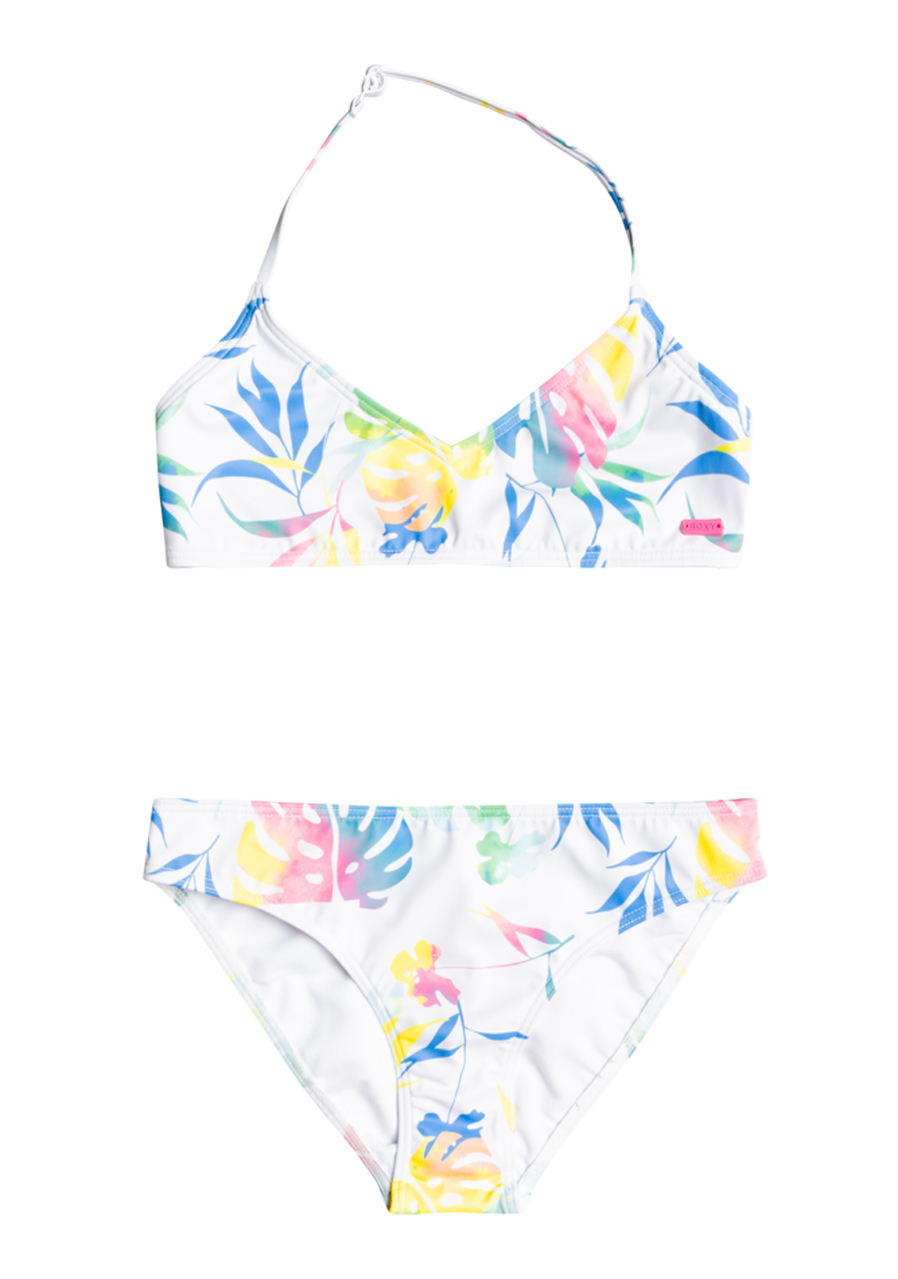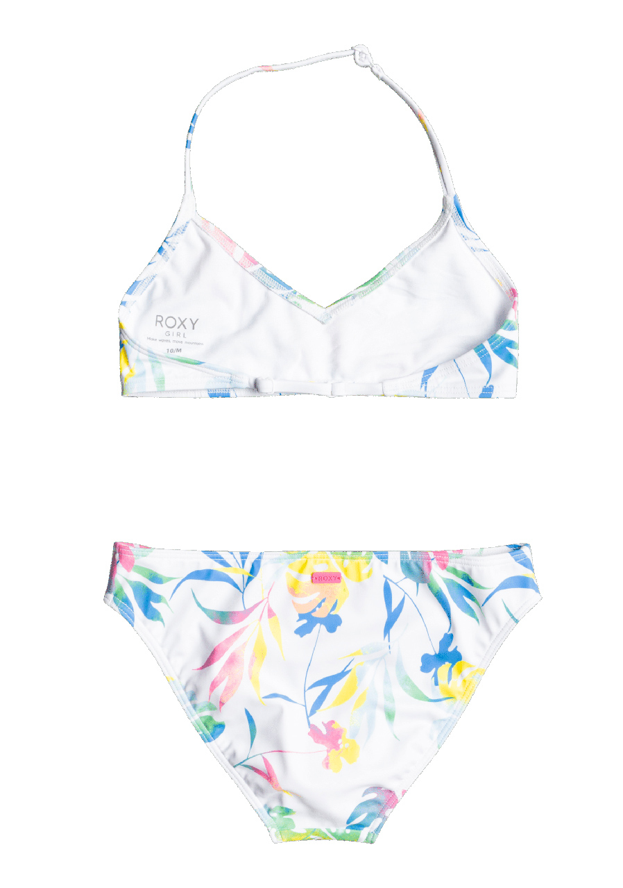 The Roxy Romanc all-over printed two-piece swimsuit for girls is attractive and highly functional. The classic cut adds charm to the swimsuit, and the high-quality material ensures that the swimsuit will stay fresh for a long time, even with children's antics. Your child will appreciate the neutral floral design, which is typical of Roxy. The lightweight material will not hinder your child in any activity and will make them feel comfortable all the time.